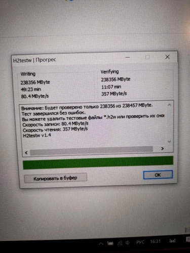 SSD диск работает идеально, реальная емкость и без ошибок, скорость передачи действительно высокая. Продавец рекомендует A + + +