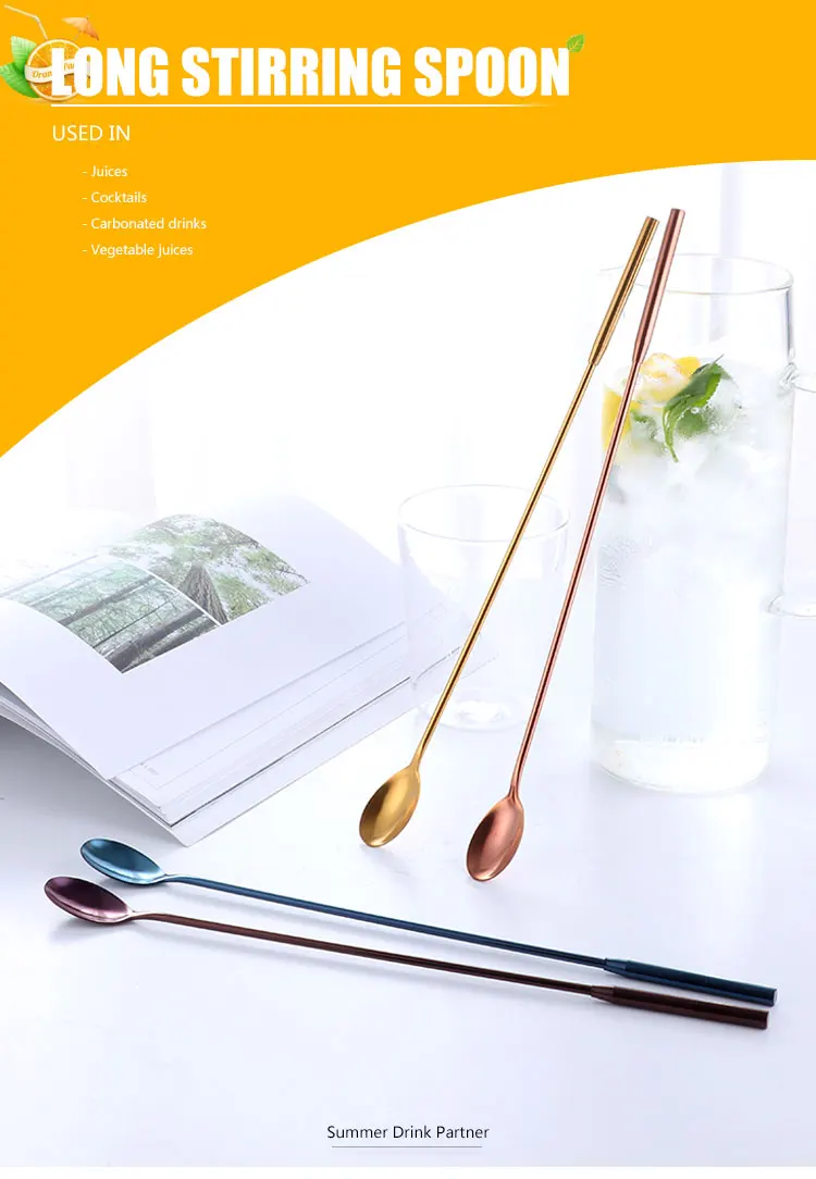 1 шт. цветная ложка для смешивания коктейлей из нержавеющей стали, длинная ложка для перемешивания чая, кухонные ложки, инструменты бармена, домашняя кухонная посуда