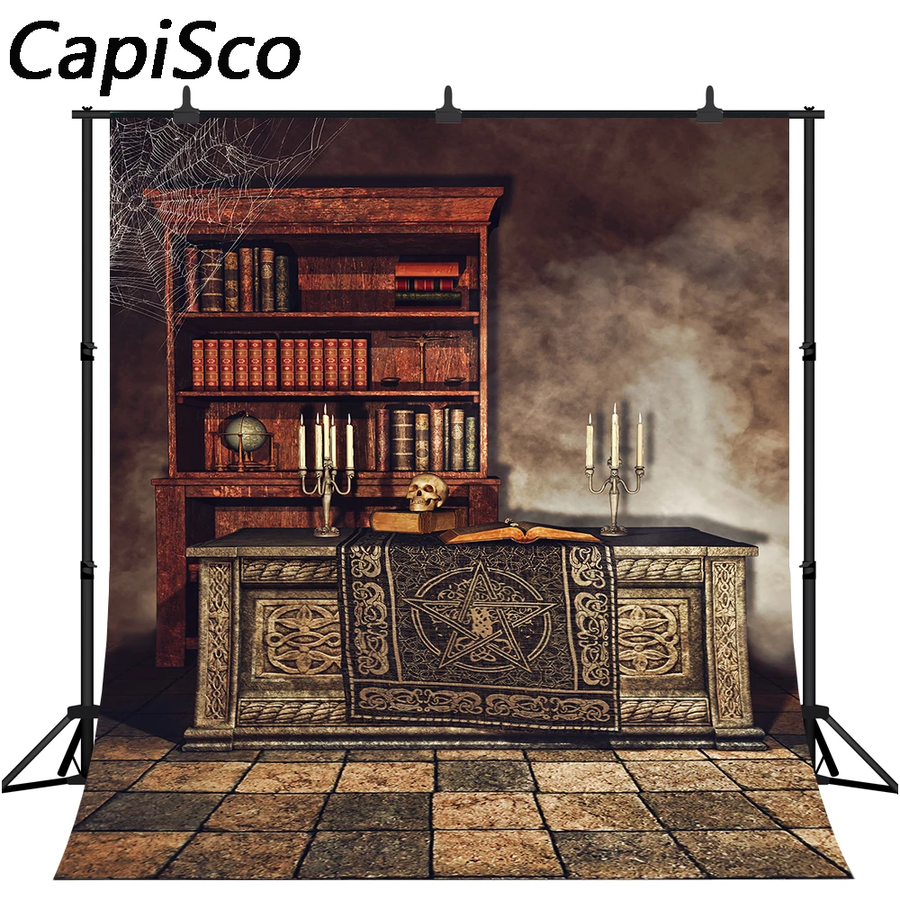 Capisco фон для фотосъемки средневековый волшебник свеча череп книжная полка детский портрет Хэллоуин фон фотостудия реквизит