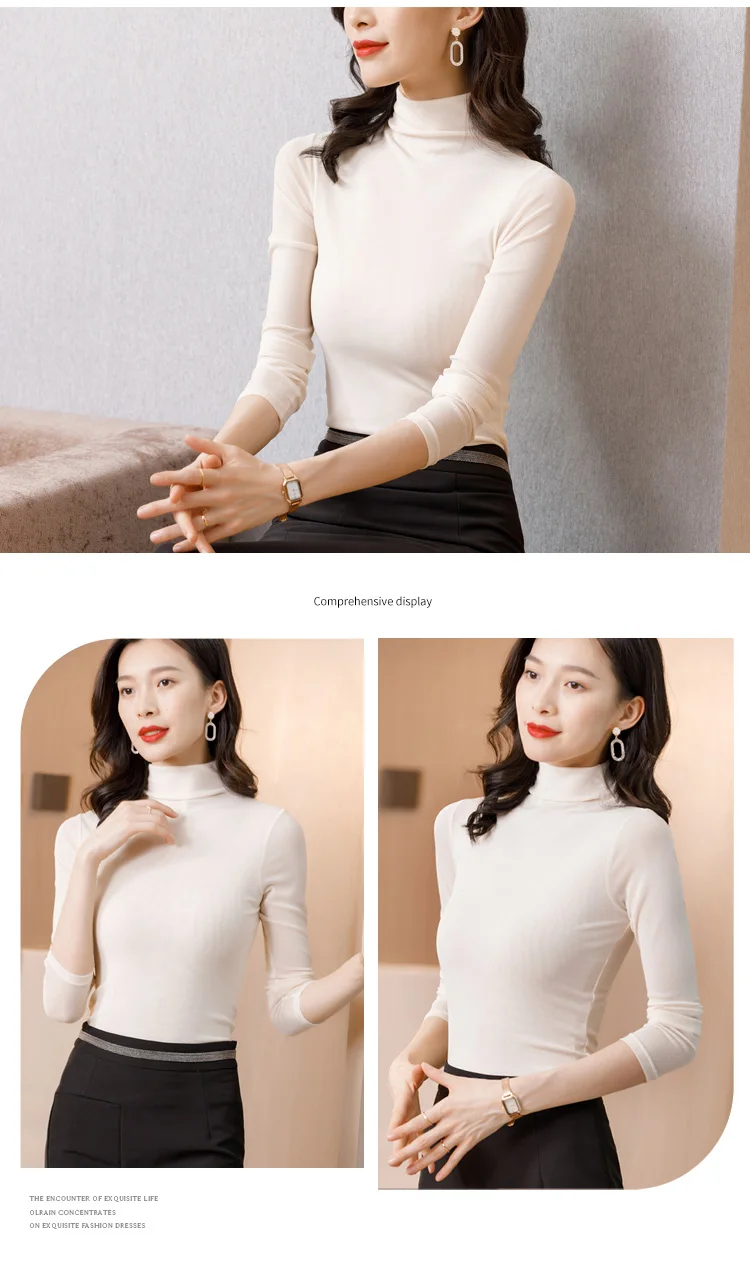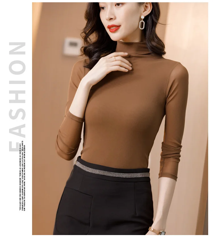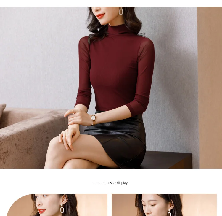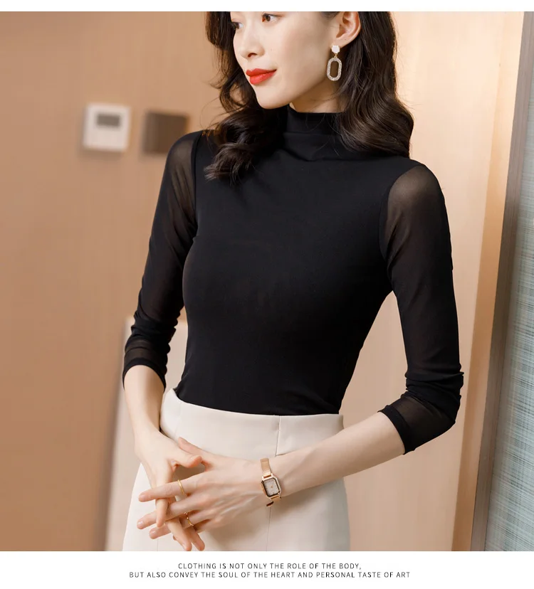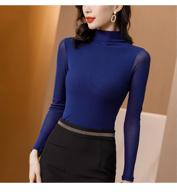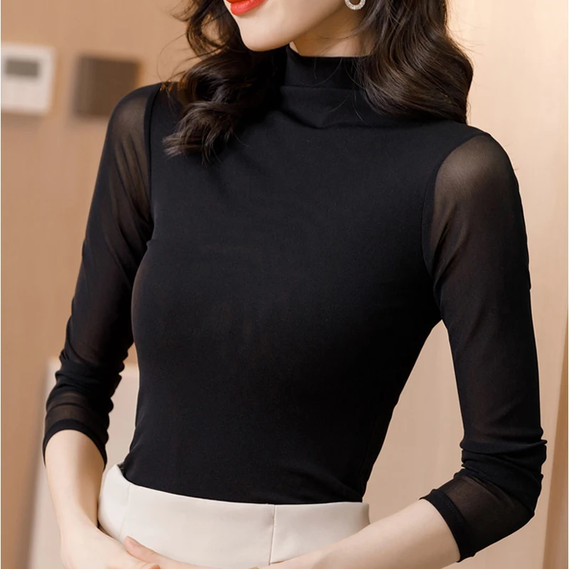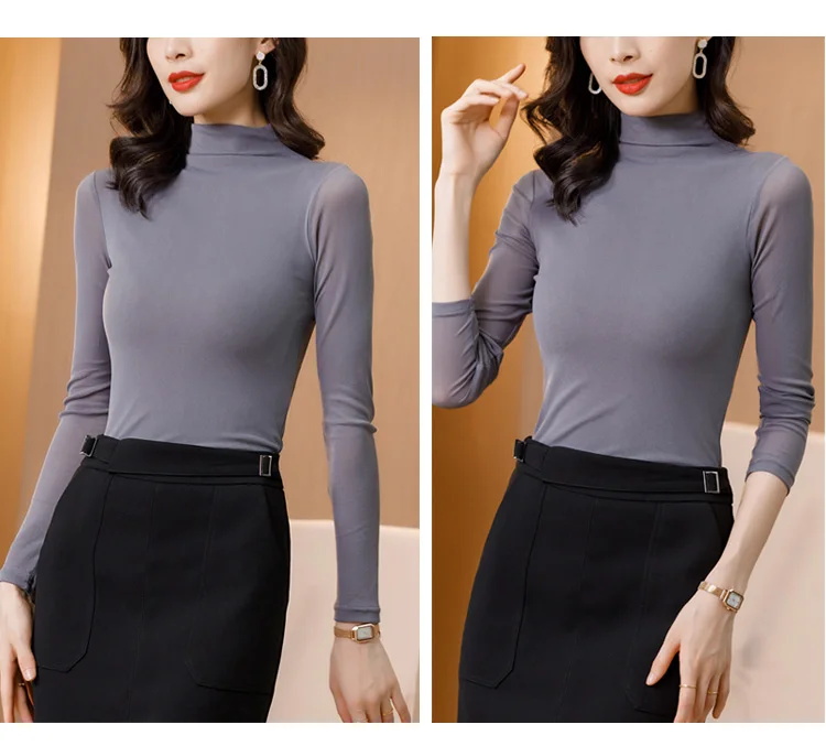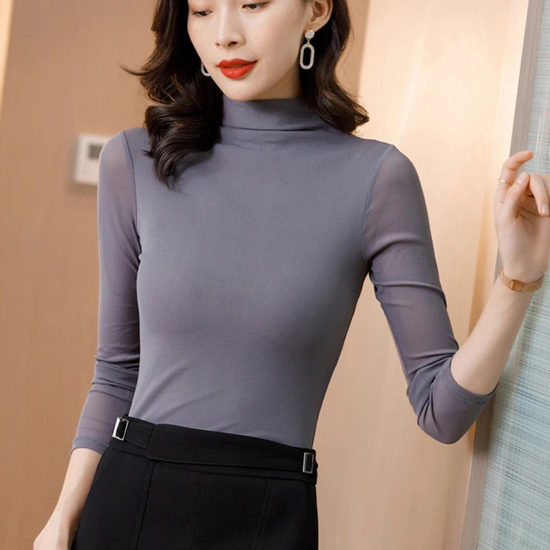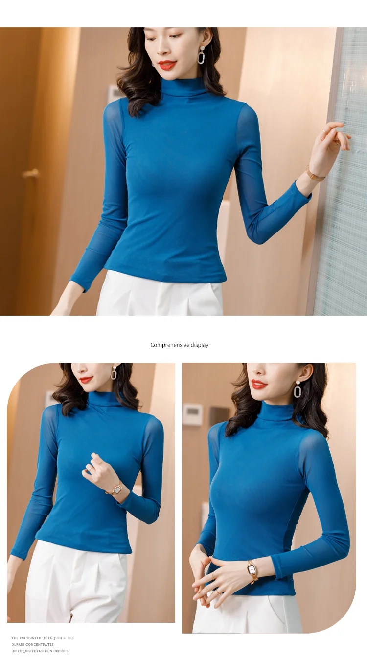 Однотонные рубашки, эластичные модные сетчатые блузки 8 цветов, женские осенние Рубашки с длинным рукавом, универсальные повседневные блузки 10768