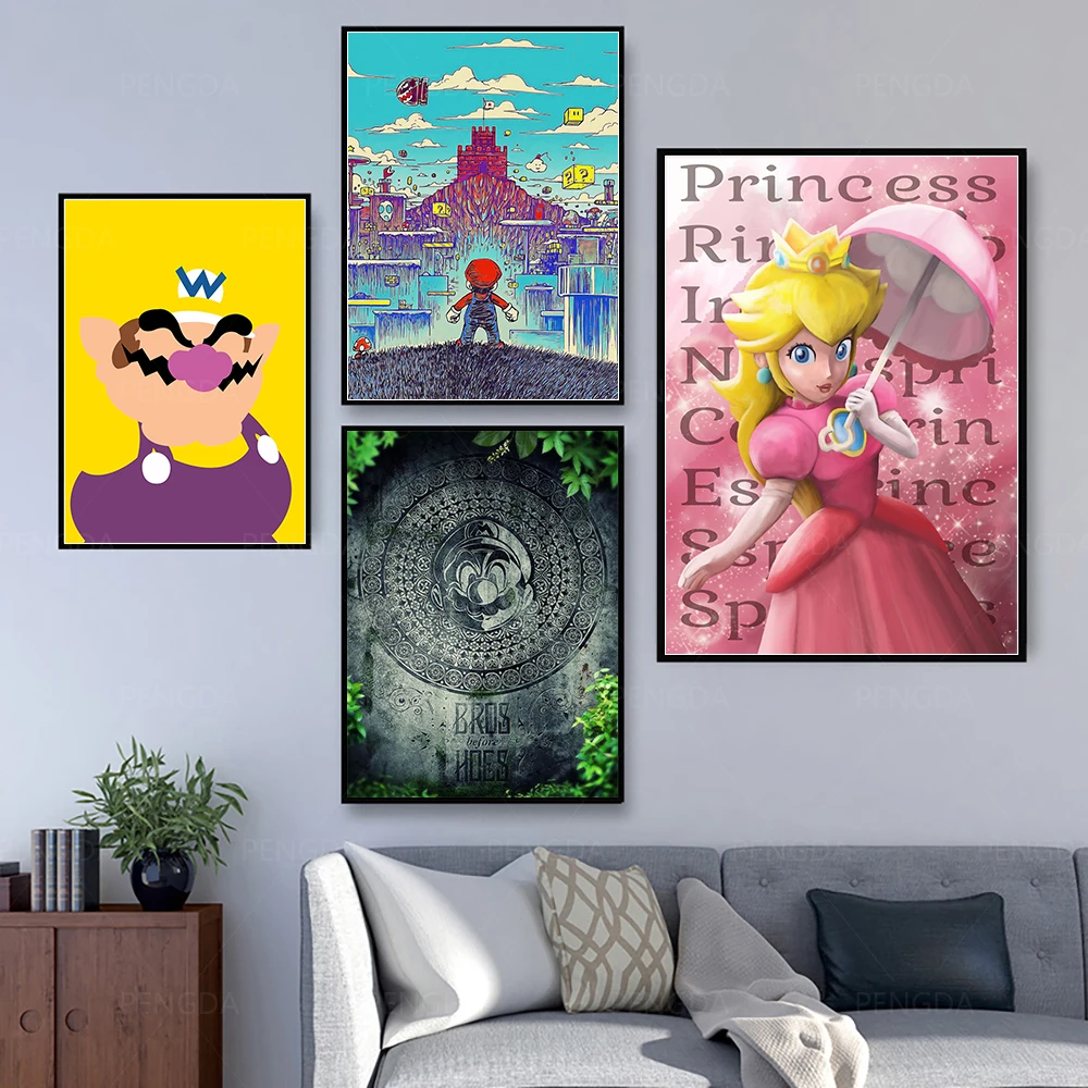 Принцесса Марио живопись на холсте, мультфильмы украшение для дома настенное искусство печать картин модульный Современный без рамки постер для гостиной
