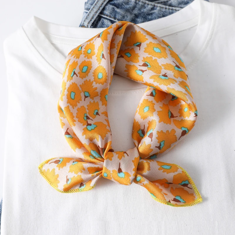 Новинка 2021, Шелковый квадратный шарф, Женская Бандана с рисунком, модная шаль и палантин, шейный платок, женская сумка, шарфы, хиджаб