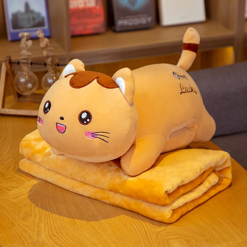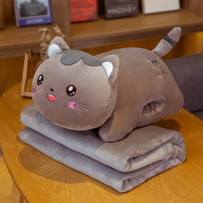 Симпатичная плюшевая игрушка для кошек, мультяшный Кот, Подушка 3 в 1, мягкие игрушки-животные с одеялом, грелка для рук, детские игрушки
