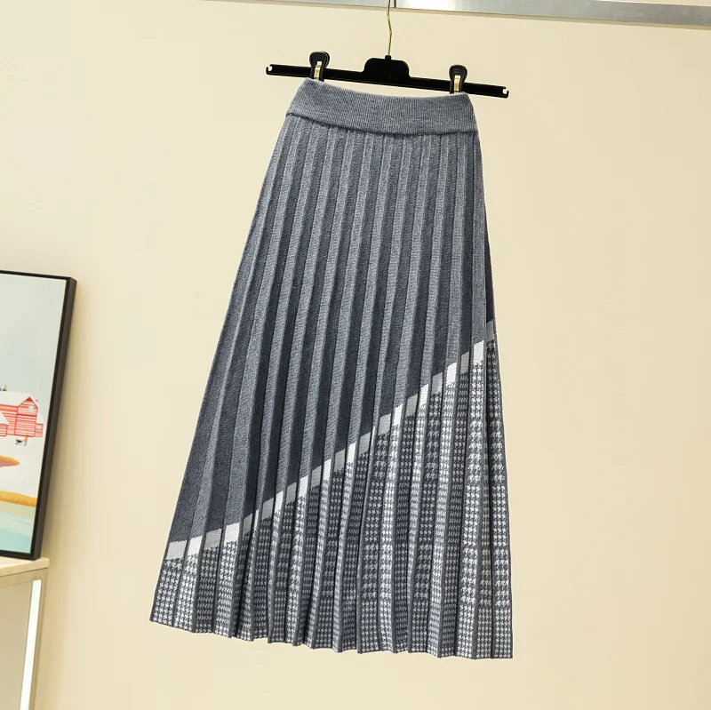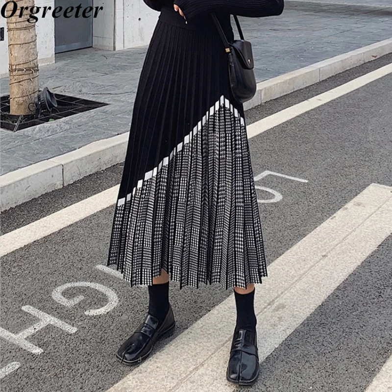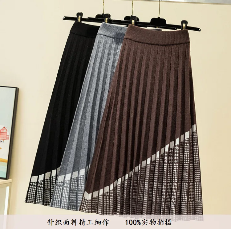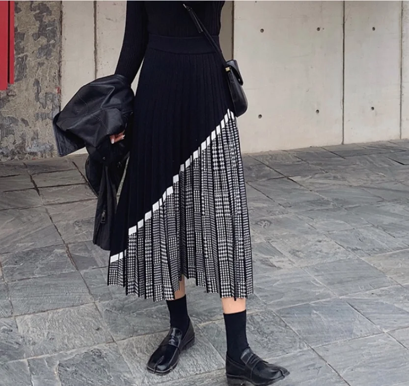 Юбка женская трикотажная, черная, плиссированная, на осеньзиму