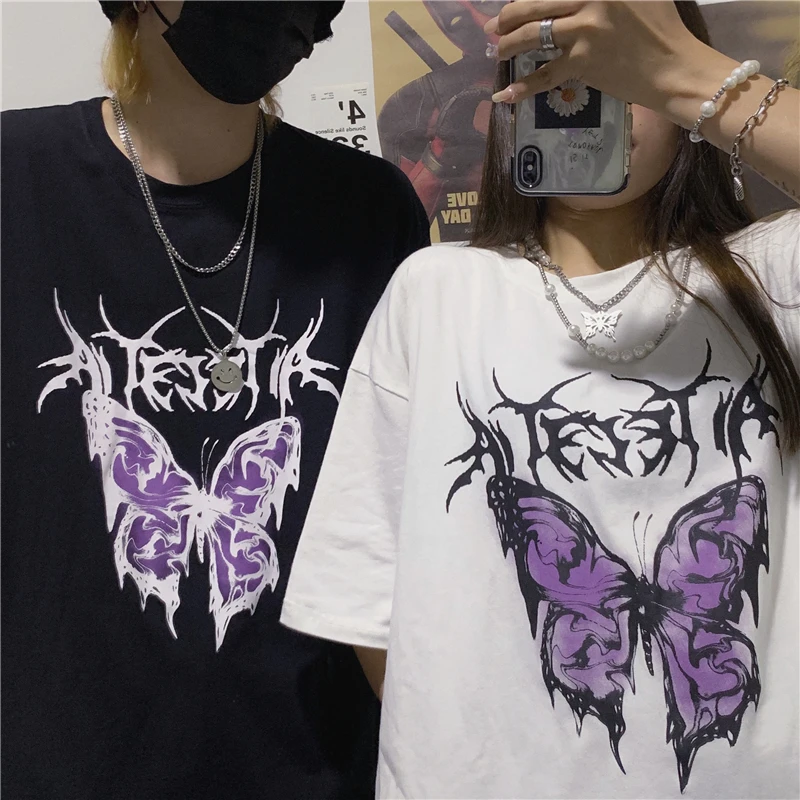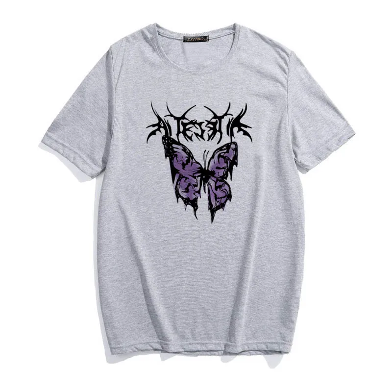 Женская футболка с коротким рукавом, готический винтажный топ с принтом бабочек и букв, уличная одежда в стиле хип-хоп, забавная Повседневная Свободная футболка в стиле Харадзюку, Ulzzang, на лето