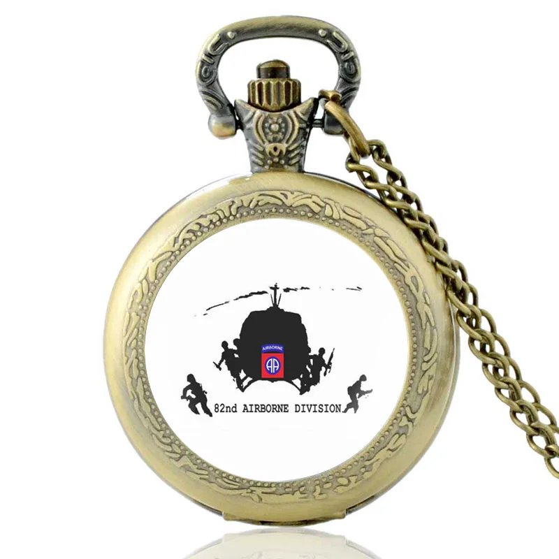 82nd разделение бронзового цвета винтажные кварцевые карманные часы для мужчин и женщин с подвеской из стекла