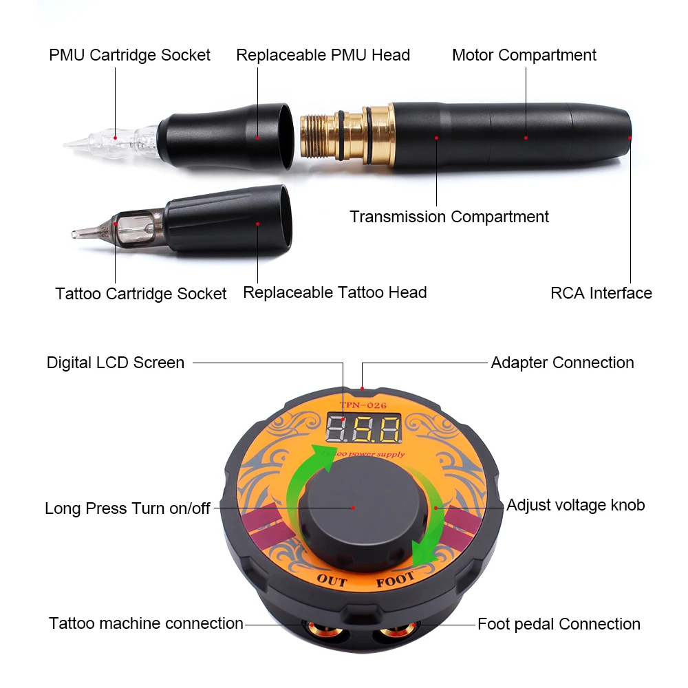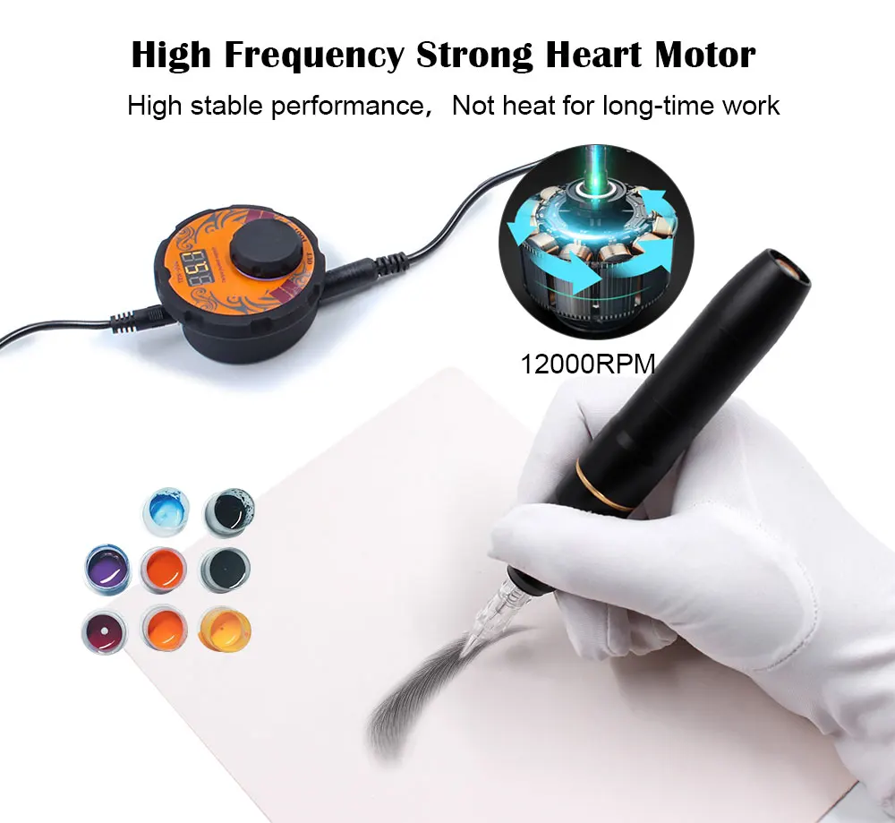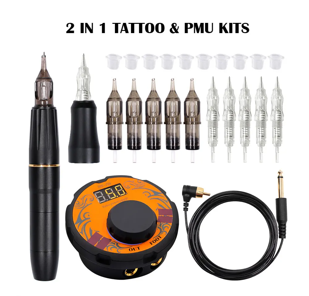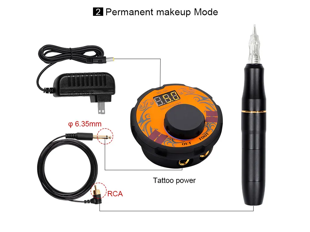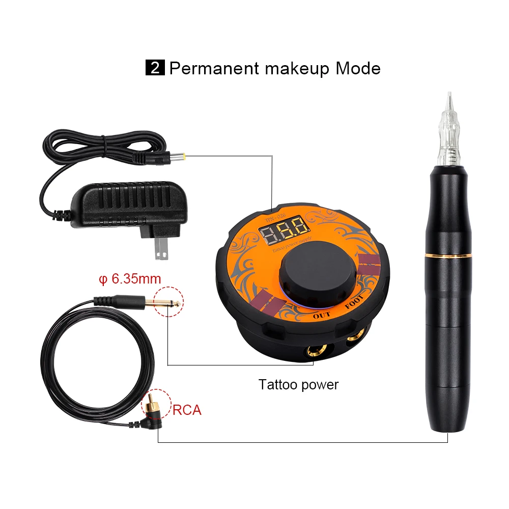 Профессиональный набор для тату-машинки, машинка для перманентного макияжа с 2 головками, ЖК-дисплей, питание для татуировок, начинающих