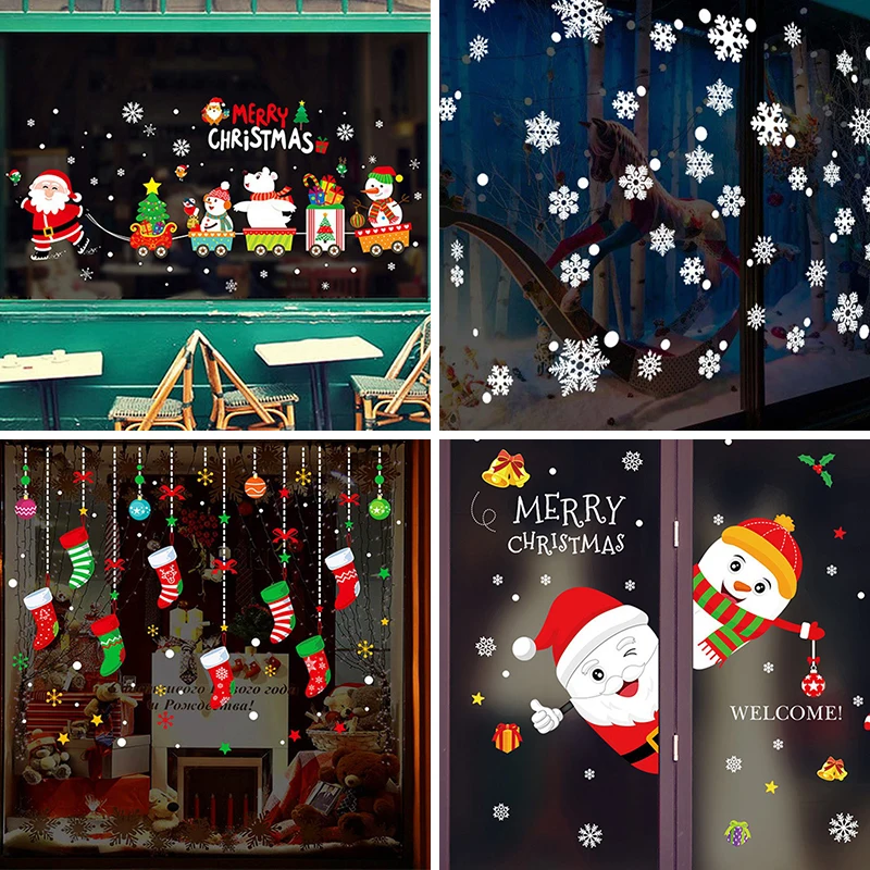 Рождественские украшения для дома, новогодние наклейки на окно год,...