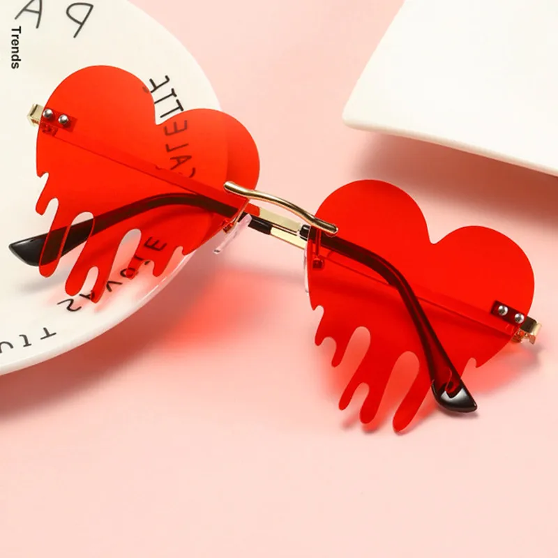 Модные солнцезащитные очки без оправы в форме сердца, женские солнцезащитные очки в форме слезы, уникальные винтажные очки в стиле стимпанк, UV400, очки для вождения, 2021