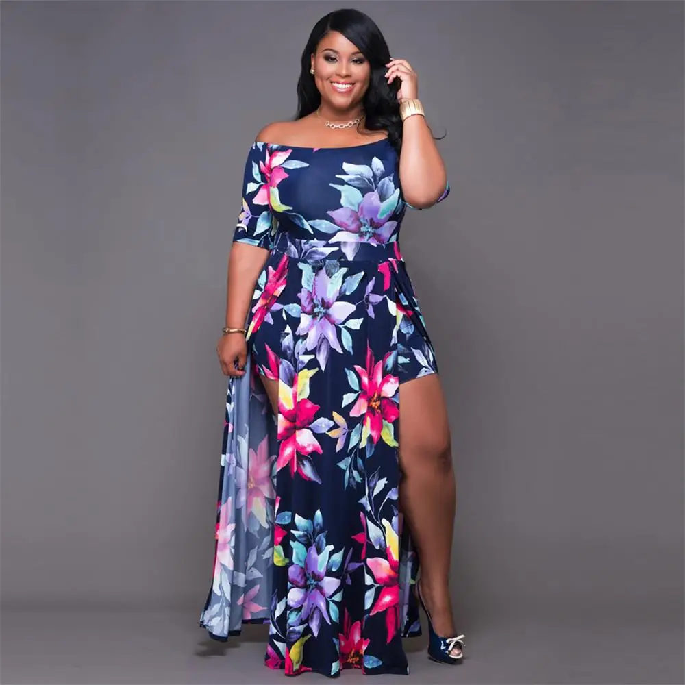 Женская одежда HAOOHU, женские платья 2021, новое пикантное пляжное платье с цветочным принтом, леггинсы с открытыми плечами и коротким рукавом, 5XL
