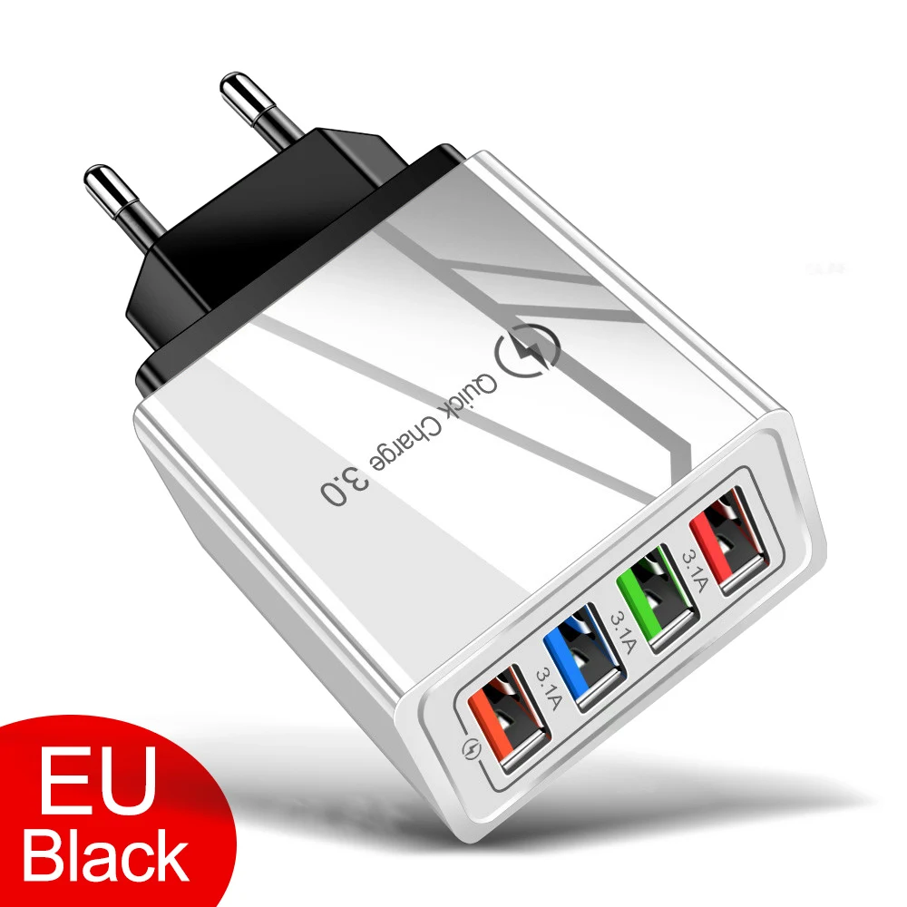 Зарядное устройство с 4 USB-портами и вилкой европейского стандарта, 3,1 А, зарядное устройство с несколькими портами для быстрой зарядки QC3.0, зарядное устройство для путешествий, быстрая доставка