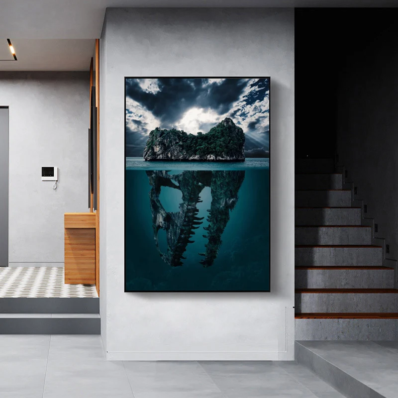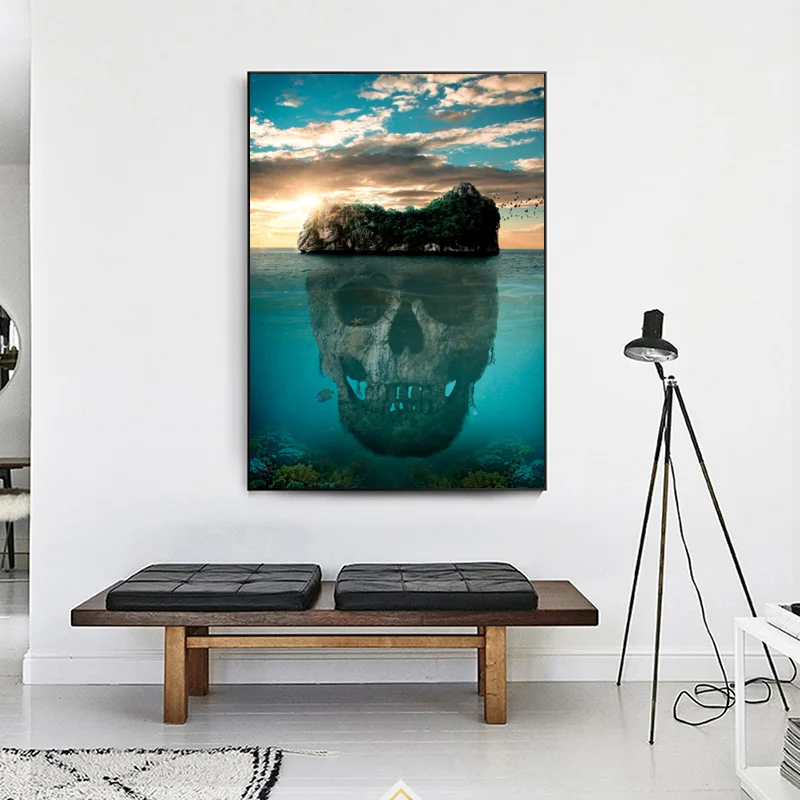 Картина на холсте, постеры, Современная Природа, пейзаж, куадро, абстрактный череп, океан, настенные картины для гостиной, картины, домашний декор
