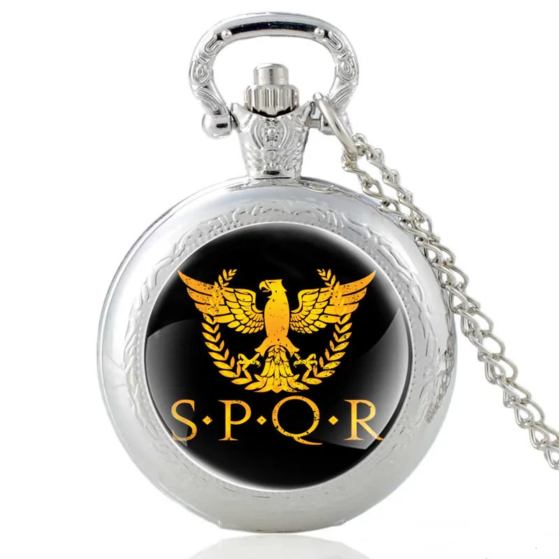 Новое поступление SPQR Римская империя винтажные кварцевые карманные часы для мужчин и женщин стеклянный купол кулон ожерелье Fob часы