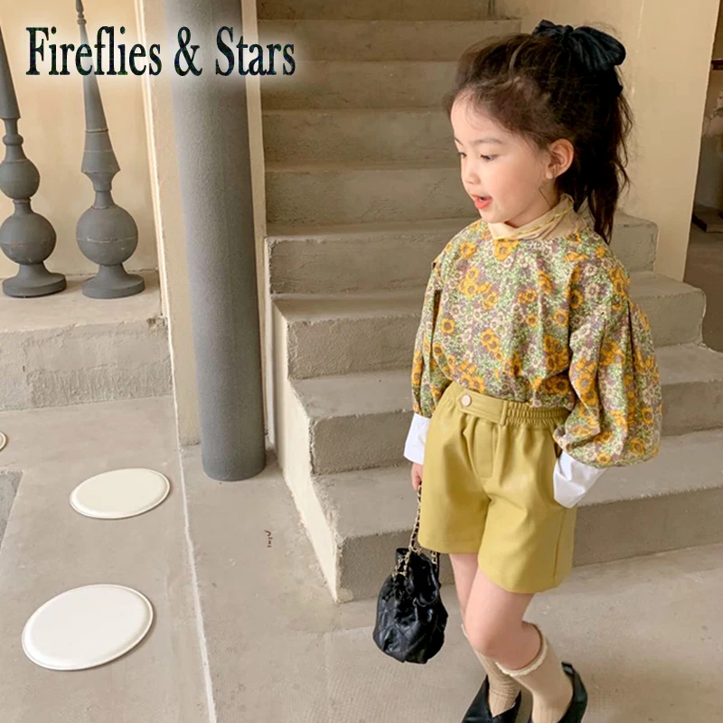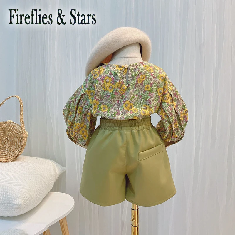 Название:Весенне-осенний комплект из 2 предметов для девочек, блузка для малышей + шорты из искусственной кожи детские костюмы Детская уличная одежда Модный цветочный принт, от 2 до 7 лет