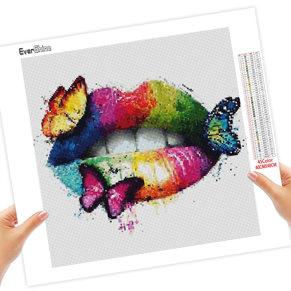 EverShine Алмазная картина Картина с губами Стразы DIY Алмазная вышивка бабочка вышивка крестом портрет ручной работы хобби подарок