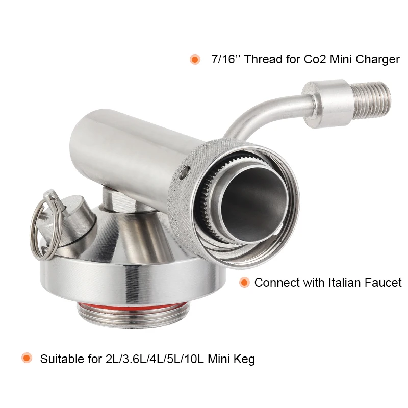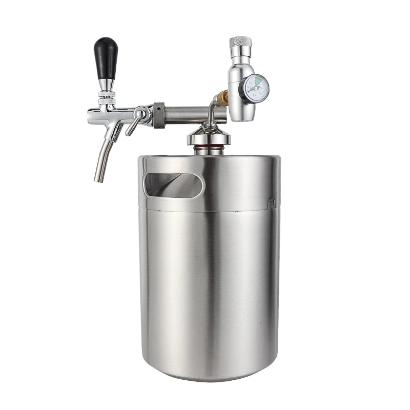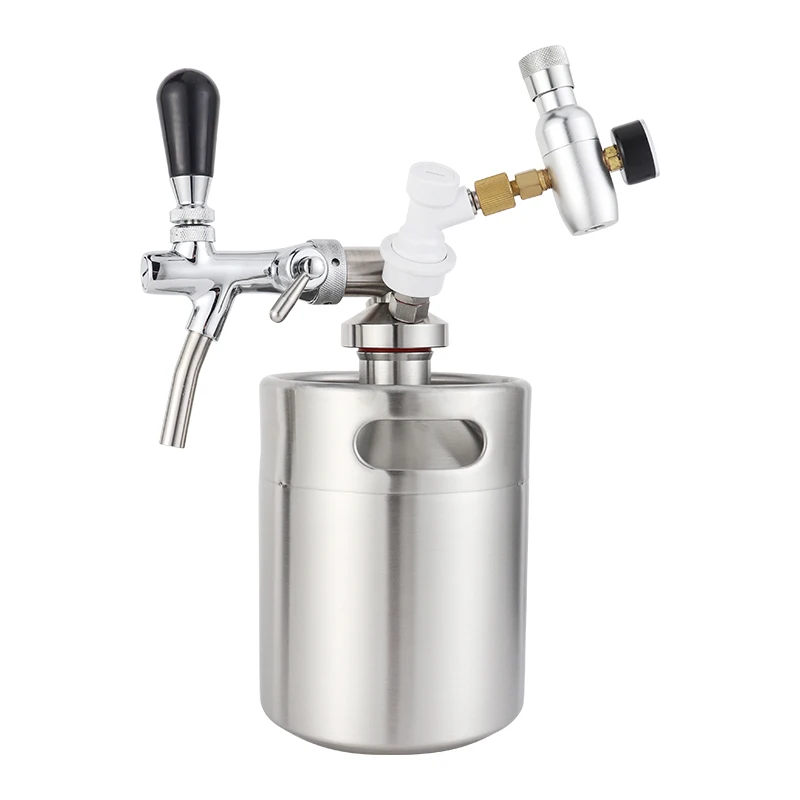 Диспенсер для пива в виде бочонка из нержавеющей стали, регулируемый кран и высококачественное зарядное устройство Co2 в комплекте