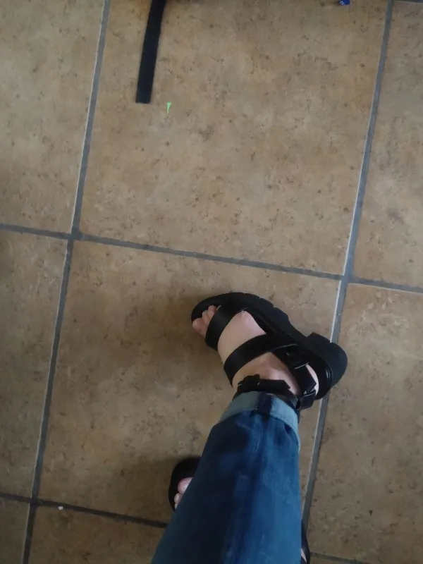 Ремешки немного длинные и свободные, я хотел бы настроить их плотнее, но длина обуви является точной, и она не имеет чрезмерного запаха, люблю обувь