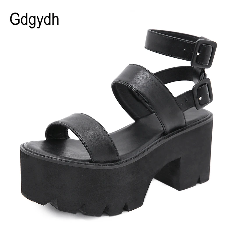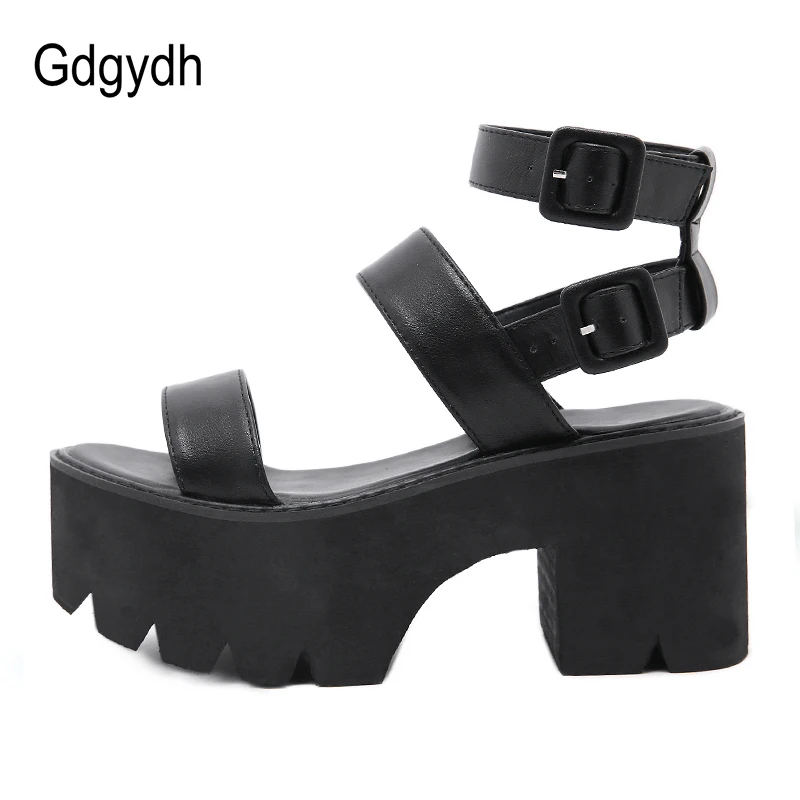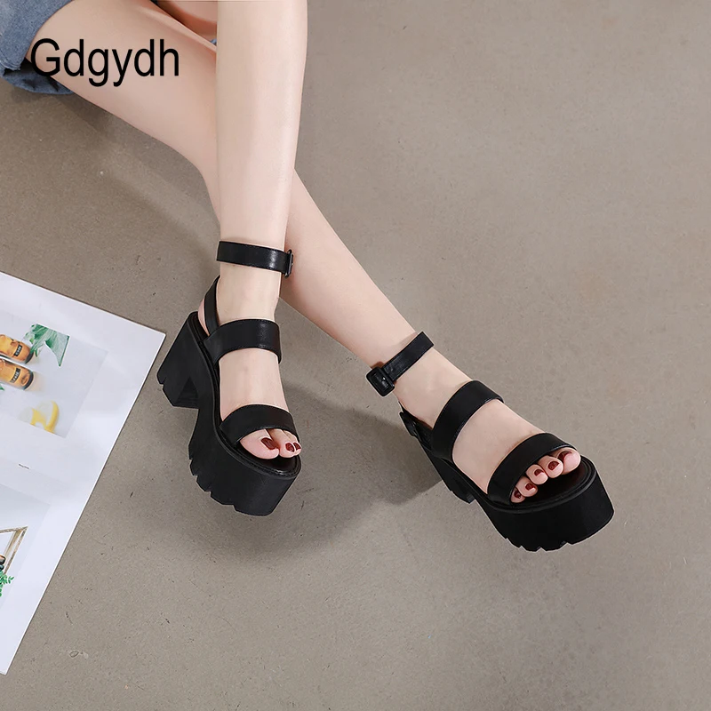 Женские босоножки на платформе Gdgydh, черные, босоножки на толстой подошве, с ремешком на щиколотке, с открытым носком, в готическом стиле, для лета, 2021