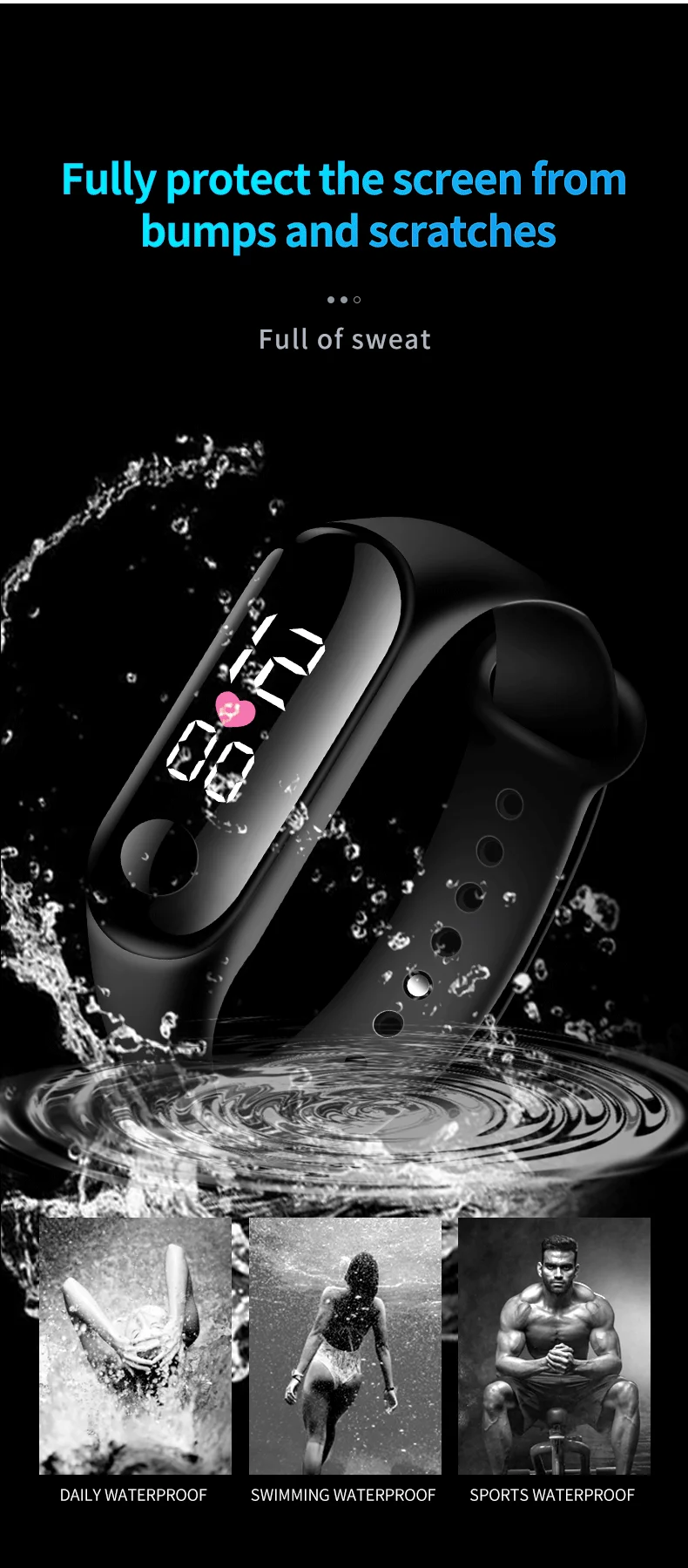 Часы мужские электронные, водонепроницаемые, с силиконовым ремешком