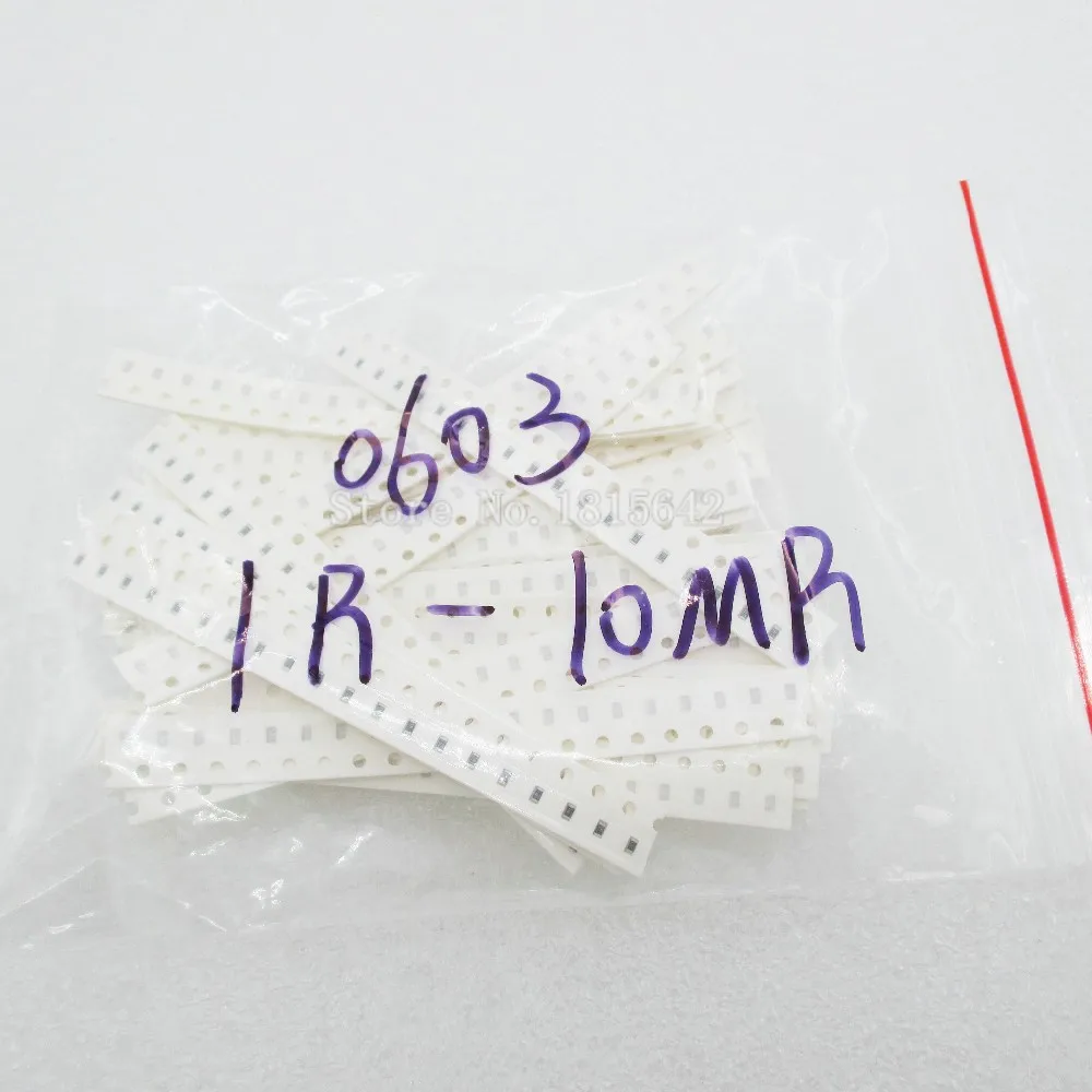 Набор резисторов 0603 SMD в ассортименте, 1 Ом-10 м ом, 5% 36 значений X 20 шт. = 720 шт., 1608 образец