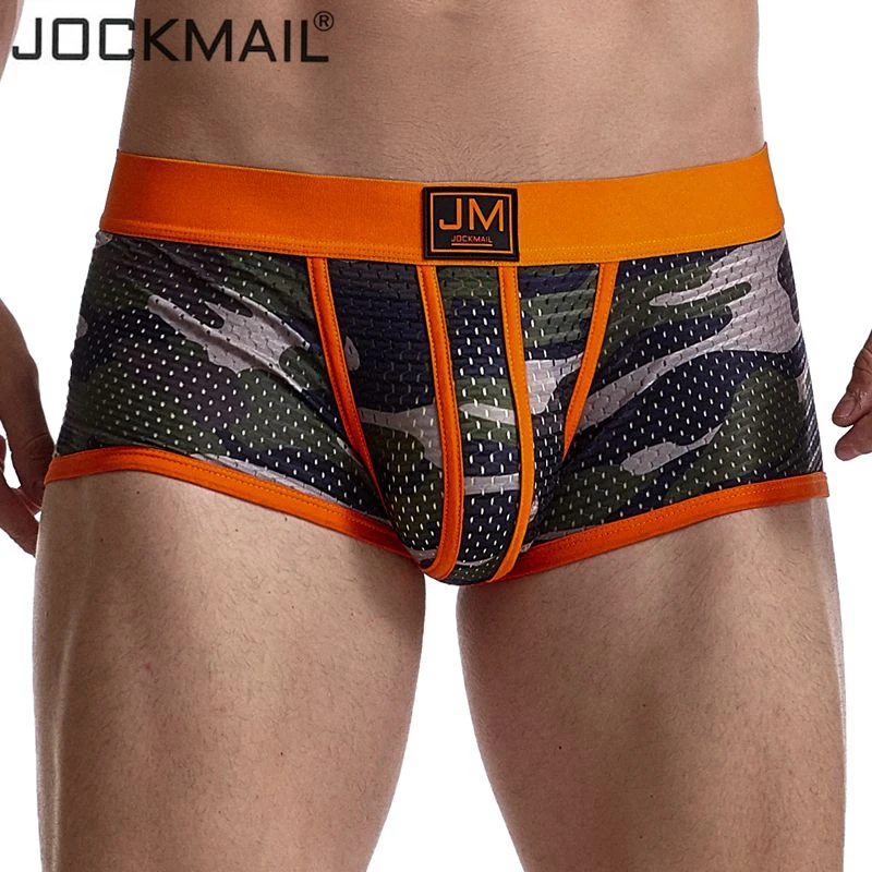 Трусы-боксеры JOCKMAIL мужские боксеры, соблазнительные мужские, камуфляжные сетчатые шорты, одежда для фитнеса, эластичные трусы
