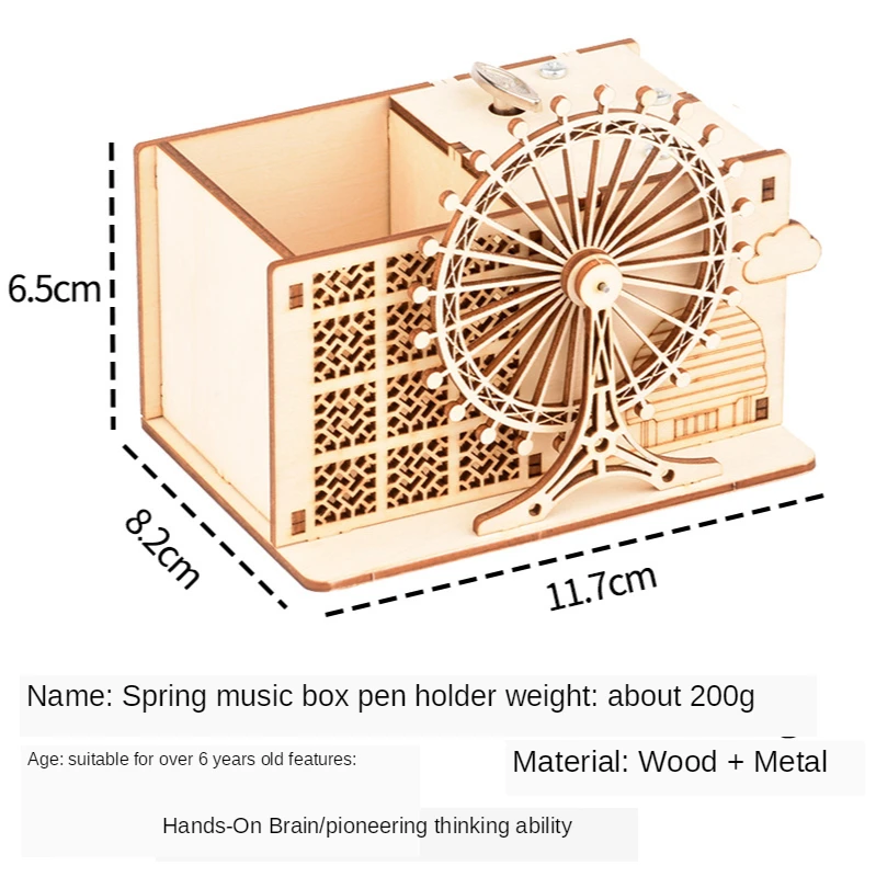 Деревянная Ручная музыкальная шкатулка «сделай сам», Заводной стержень многофункциональный держатель для ручек, игрушки, научный эксперимент, набор, обучающая игрушка для детей