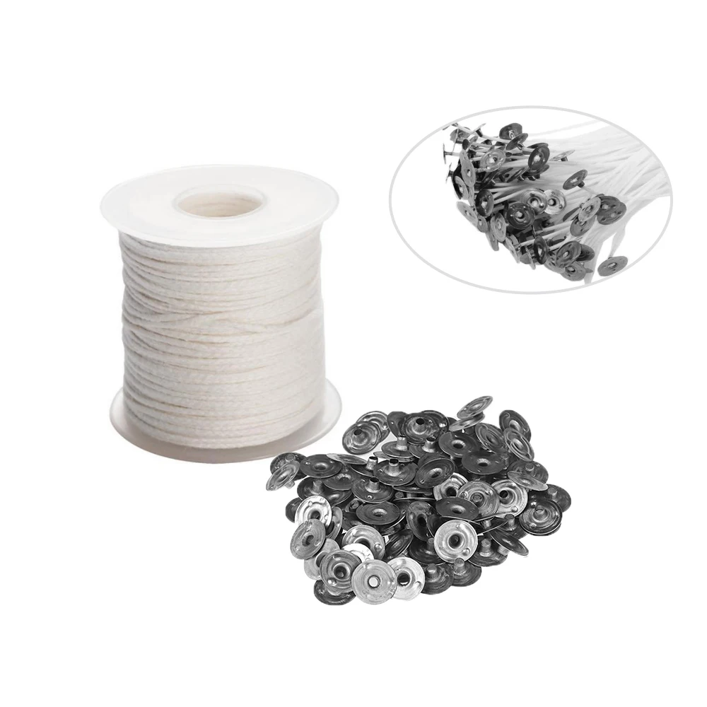 1 шт., 61 м, хлопковая оплетка, сердечник для свечи, катушка, без дыма, DIY, масляные лампы, принадлежности для свечей + 100 шт., металлический фитиль для свечи, вкладка для поддержки