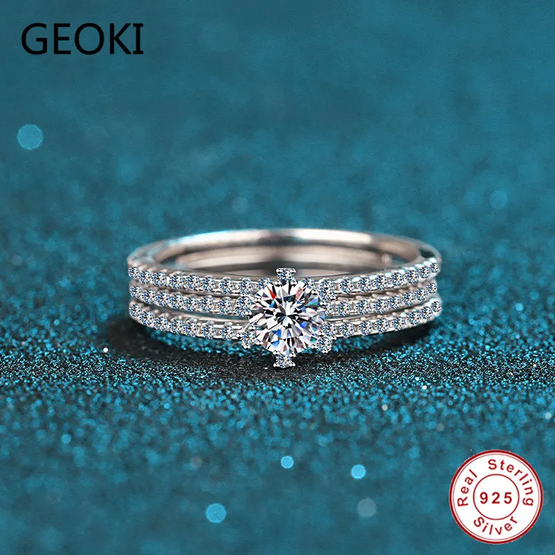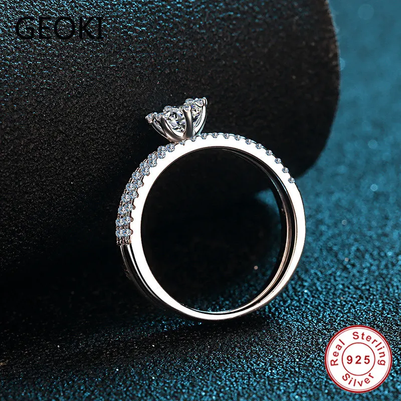 Geoki прошел алмаз Тесты идеальный крой 0,5 CT Муассанит Обручение кольцо 925 пробы серебро Кольца с алмазами Роскошные ювелирные изделия