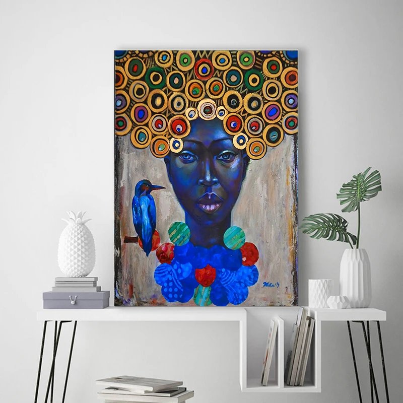 Картина на холсте для гостиной круг и птица над африканскими женскими голова плакаты на заказ Печать украшение комнаты настенное искусство paintin