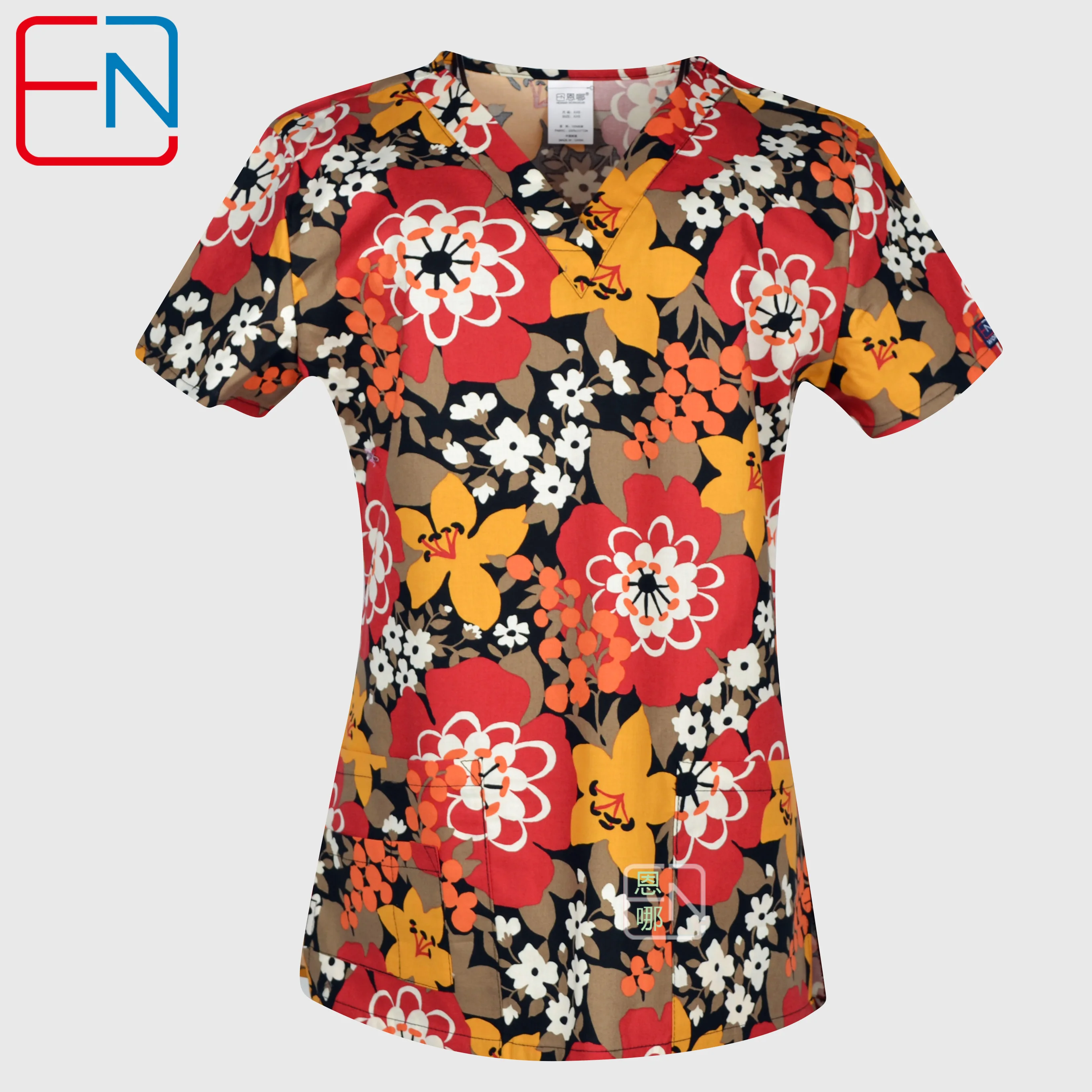 Женский скраб-топ с v-образным вырезом, 100% хлопок, цветочный скра...