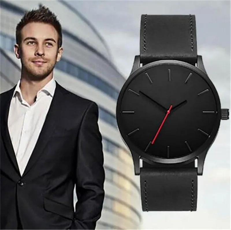 Часы мужские кварцевые с большим циферблатом, с кожаным ремешком