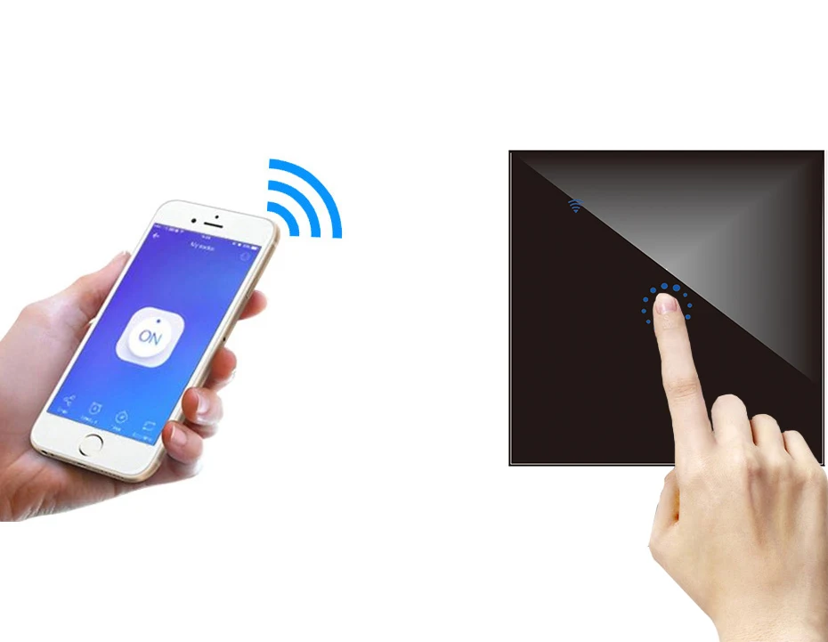 Переключатель имеет два способа управления: Сенсорное управление и пульт дистанционного управления Wi-Fi для смартфона.