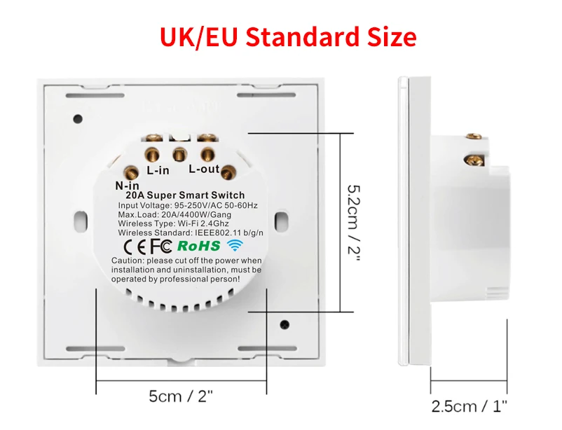 Тип: WiFi smart водонагреватель переключатель панельМатериал: закаленное стекло + АБС-пластикЦвет изделия: белый/черныйФункция: управление Wi-Fi, Совместимость с Amazon Alexa Echo Google Home AssistantПитание: от сети переменного тока 90-250 50/60 ГцМаксимальный ток: 20A / 250VМаксимальная мощность: 4400 ВтРабочая температура: -10 ℃-45 ℃ (14 ℉- 113 ℃)Рабочая влажность: ≤ 80%Приложение: Tuya Smart или Smart LifeРазмеры: 86*86*35 мм (3,4*3,4*1,4 дюймов)Wi-Fi Тип: 2,4 ГГц 802.11b/g/nСертификация: CE, RoHS, FCC