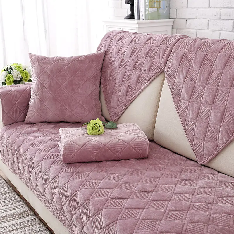 Короткое плюшевое полотенце серого цвета для дивана, Европейский Короткий Плотный стеганый чехол для дивана, нескользящий Европейский чехол для гостиной