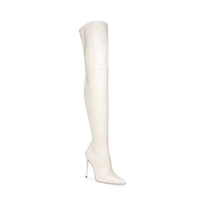 DovereissМодная женская обувь; Зимние пикантные элегантные белые Сапоги выше колена с острым носком на шпильке; Выразительные сапоги для зрелых женщин; 43