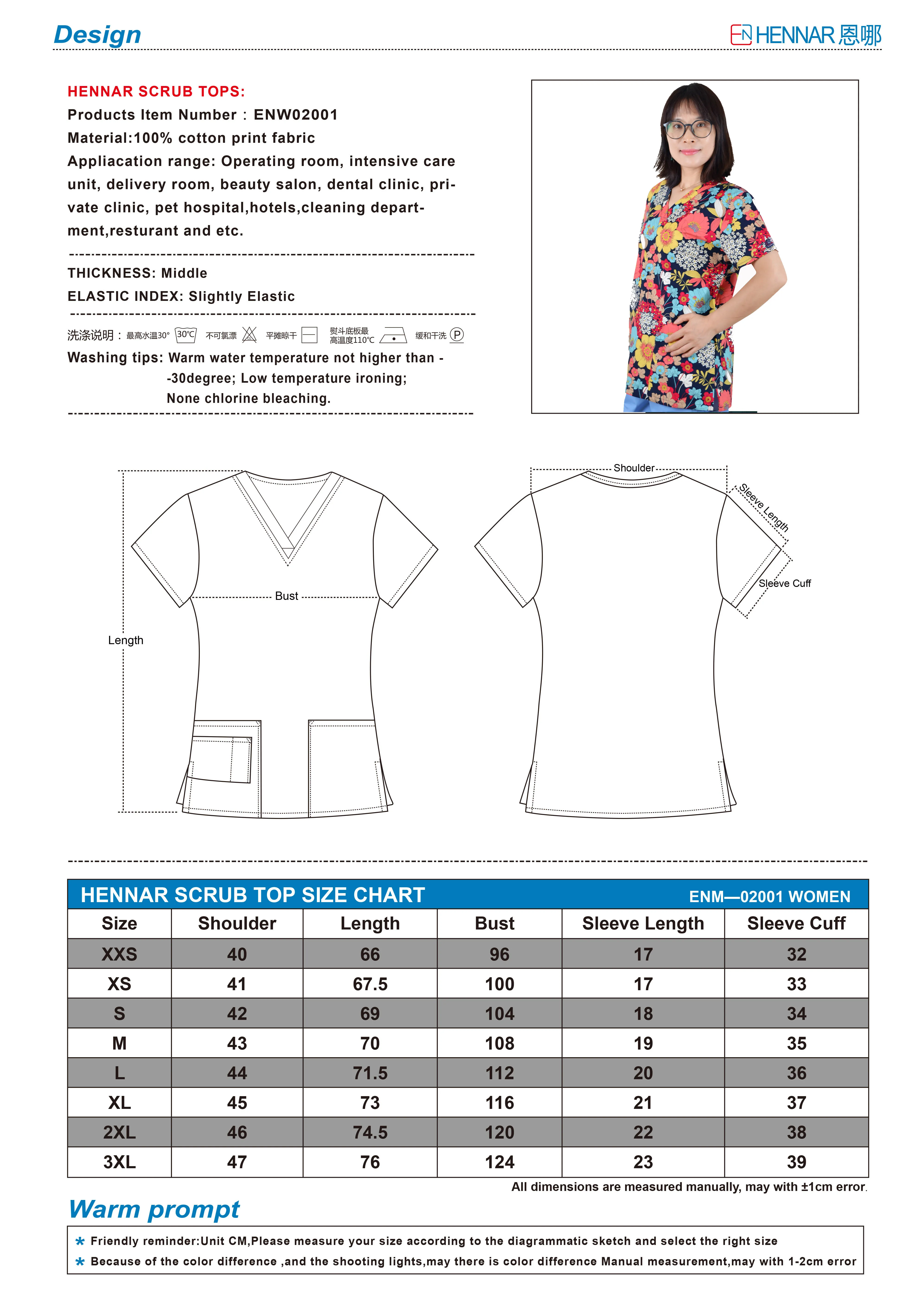 Hennar Для женщин скраб-топ 100% принт хлопчатобумажная Униформа с ...