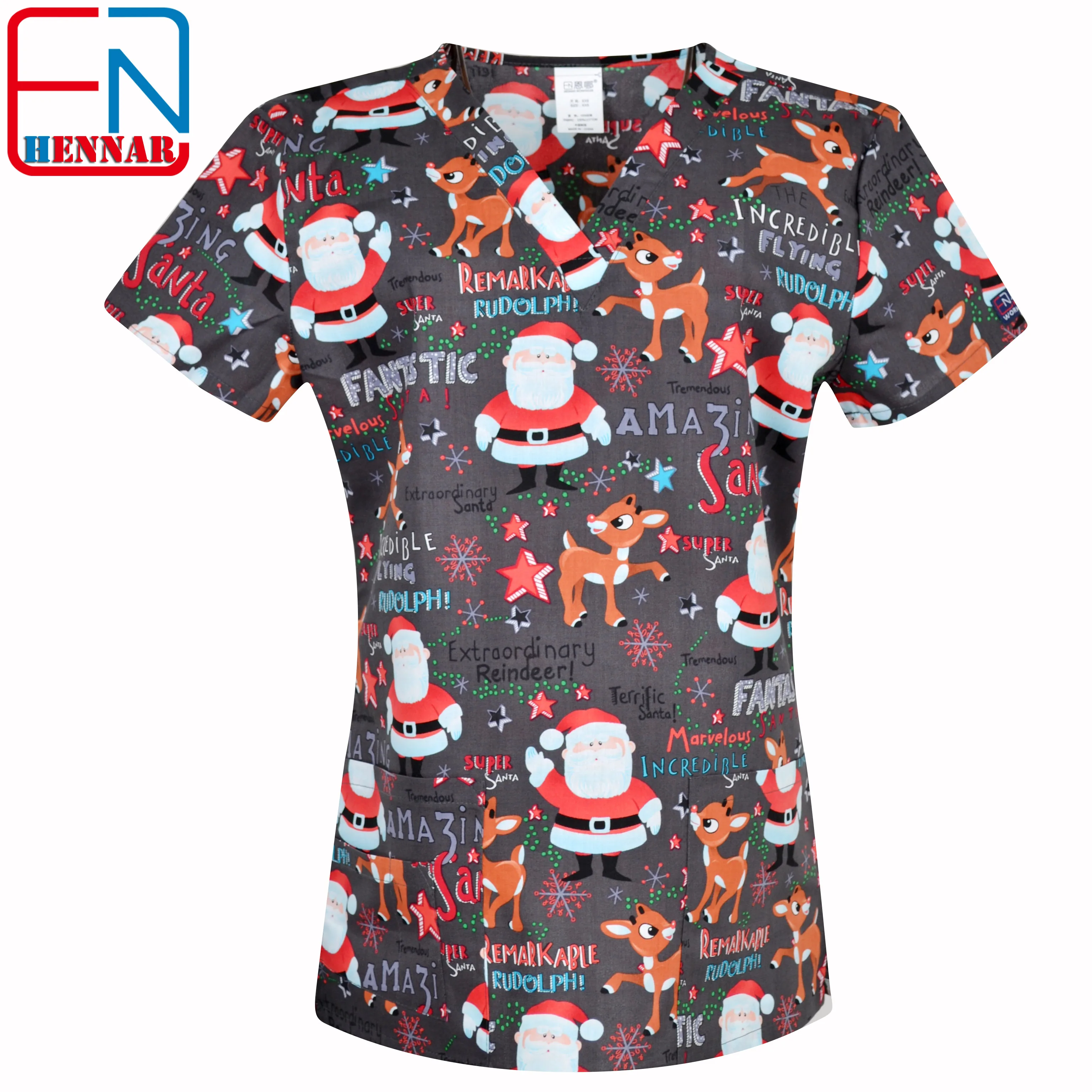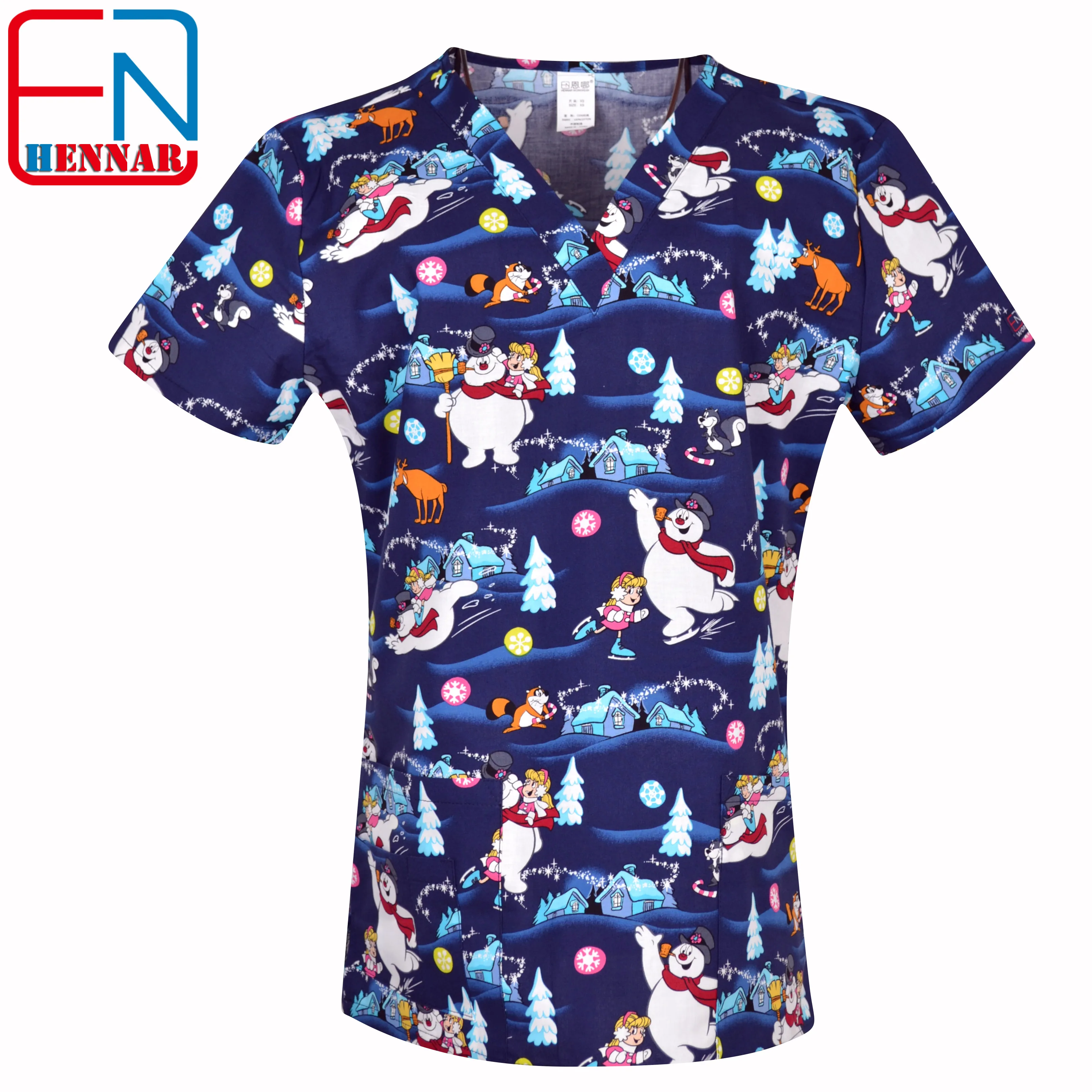 Медика Скраб Топы Скраб Униформа 100% принт хлопок Рождество дизайн...