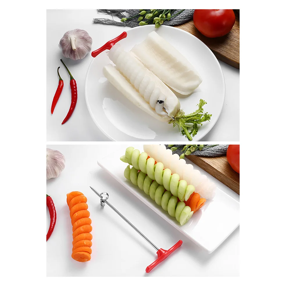 1 шт. кухонные аксессуары спиральный нож из нержавеющей стали резка огурцов вращающийся волнистый нож винт фрукты и овощи спиральный нож