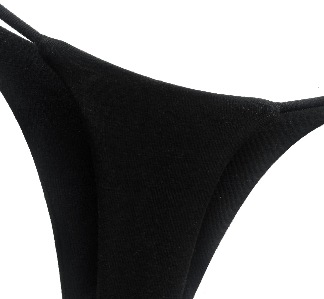 Модный хлопковый двухслойный черный комплект бикини с тонким поясом...