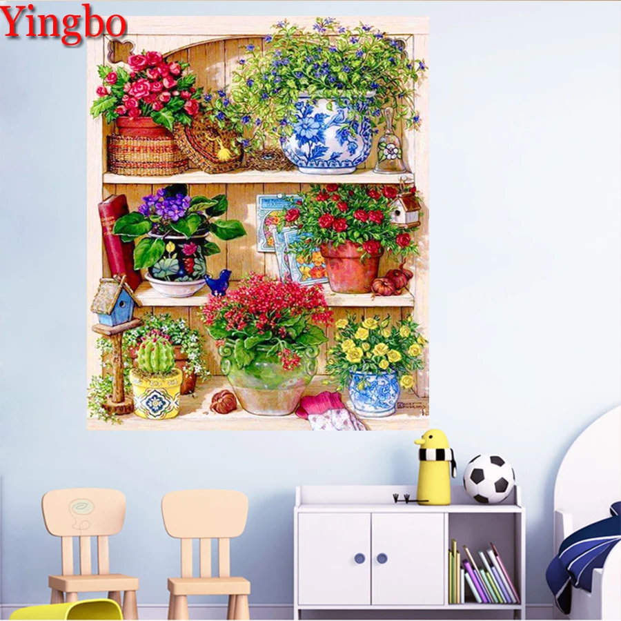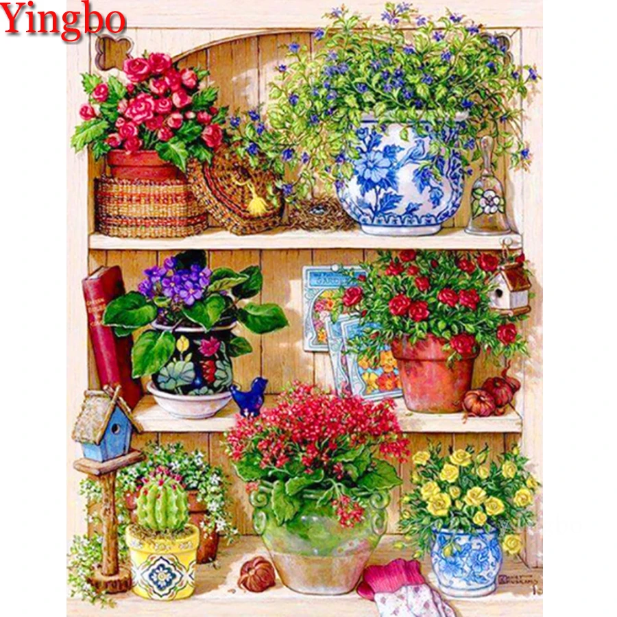 5D алмазная живопись, цветок ваза с ромашками, кактус, витрина магазина, сделай сам, алмазная вышивка, полная квадратная круглая дрель, Алмазная мозаика, искусство 2020