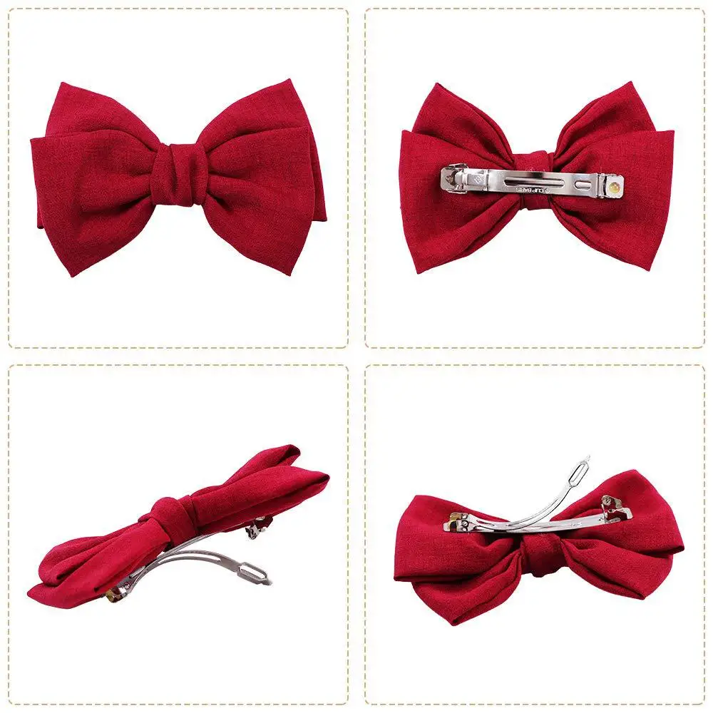Заколка для волос с большим бантом, винтажная, черная, винно-красна...