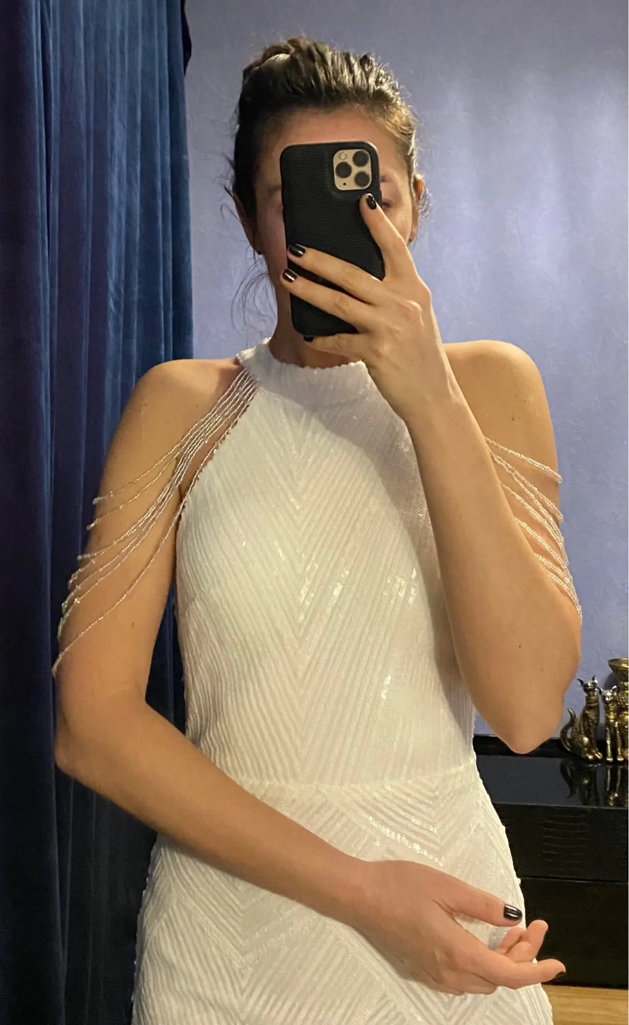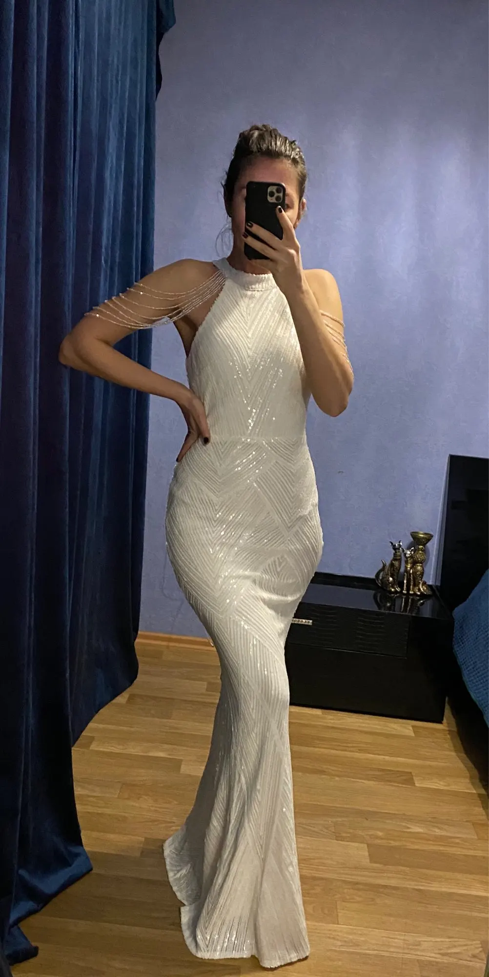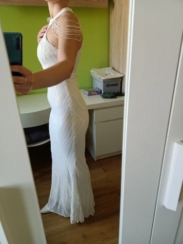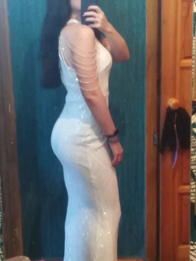 Это платье просто великолепное ! Оно восхитительное ! Ничего не торчит ! Все идеально ! Как будто из дорогого салона ! Я надену данное платье на свою свадьбу ! Спасибо продавцу , все супер ! Буду покупать у вас ещё ! This dress is amazing , absolutely stunning ! I will definitely wear to wedding ceremony ! And will definitely buy from u some more dresses ! The size is l to my parameters : 92, 75, 97 , 170 is height