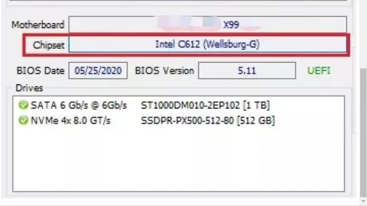 Набор микросхем материнской платы является серией C610 (например, C612, которая относится к набору микросхем сервера. Это эквивалентно чипсету X99)