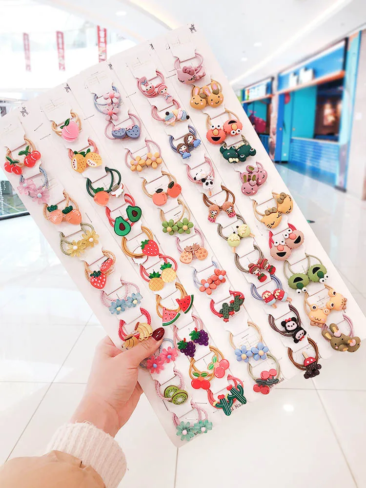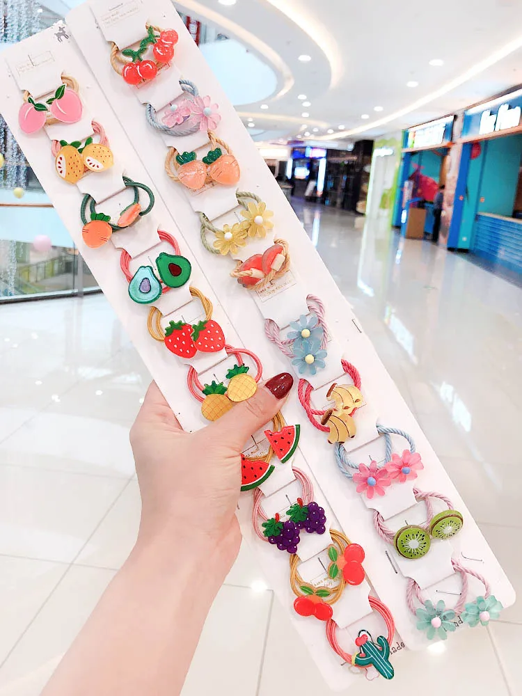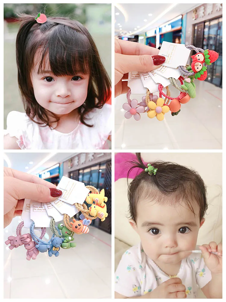 1 комплект, новинка, Детские эластичные резинки для волос с милыми мультяшными свежими фруктами и цветами, милые резиновые резинки со смайликами для девочек, детские аксессуары для волос