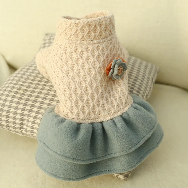 Роскошная юбка для собаки, зимнее теплое пальто для щенка, Цветочная Женская праздничная одежда, костюм для чихуахуа, пуделя, бульдога