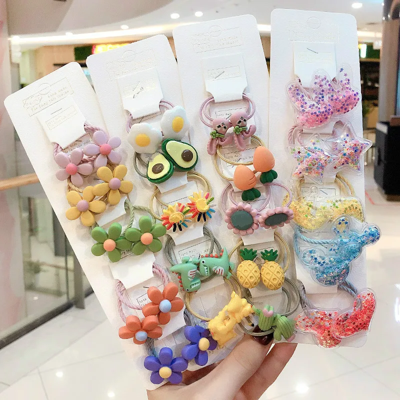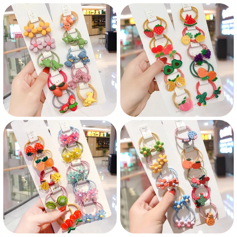 Резинки для волос Детские, 3610 шт.компл., с милыми мультяшными животными, фруктами, трикотажные резинки для волос