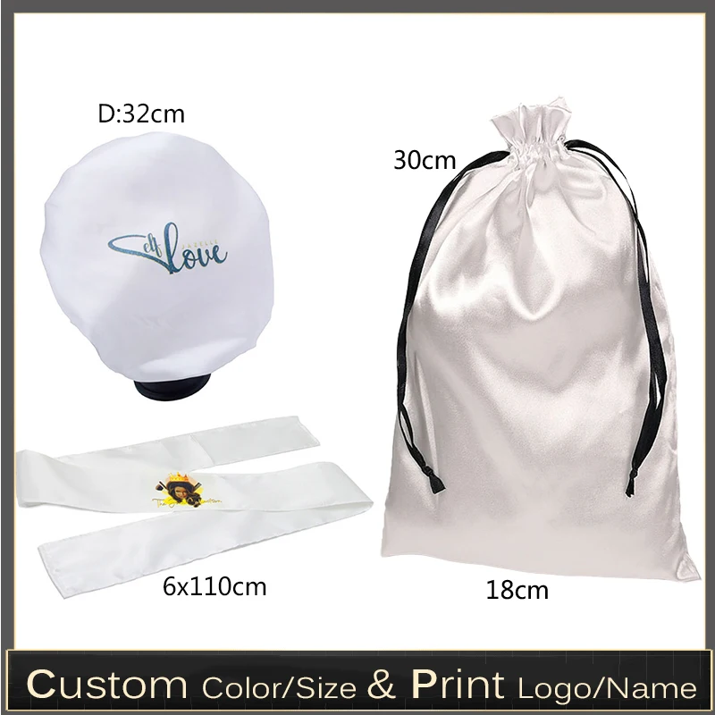 Новинка, Шелковый Атласный пакет для наращивания волос, упаковочная пленка для волос, повязка на голову, Чепчики, сумка для париков с логотипом на заказ, 18x30x40 см