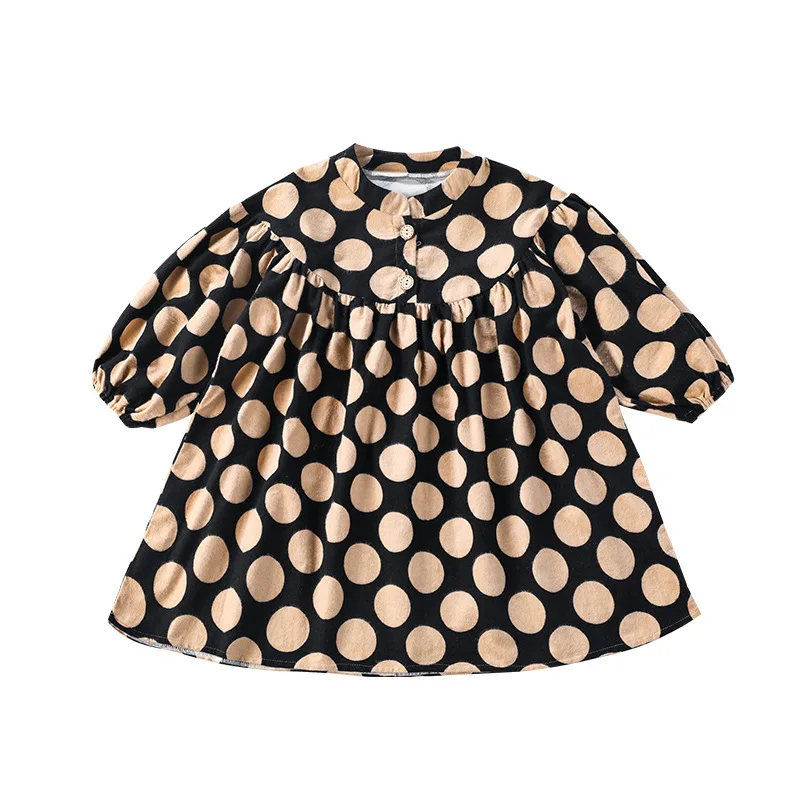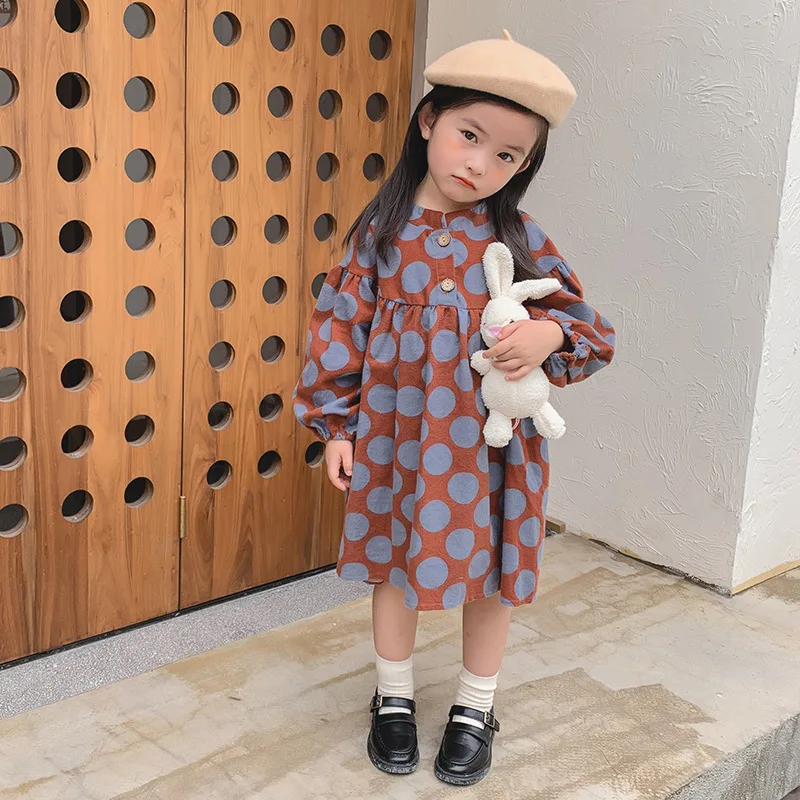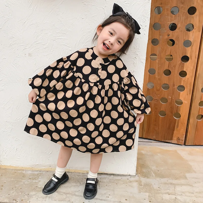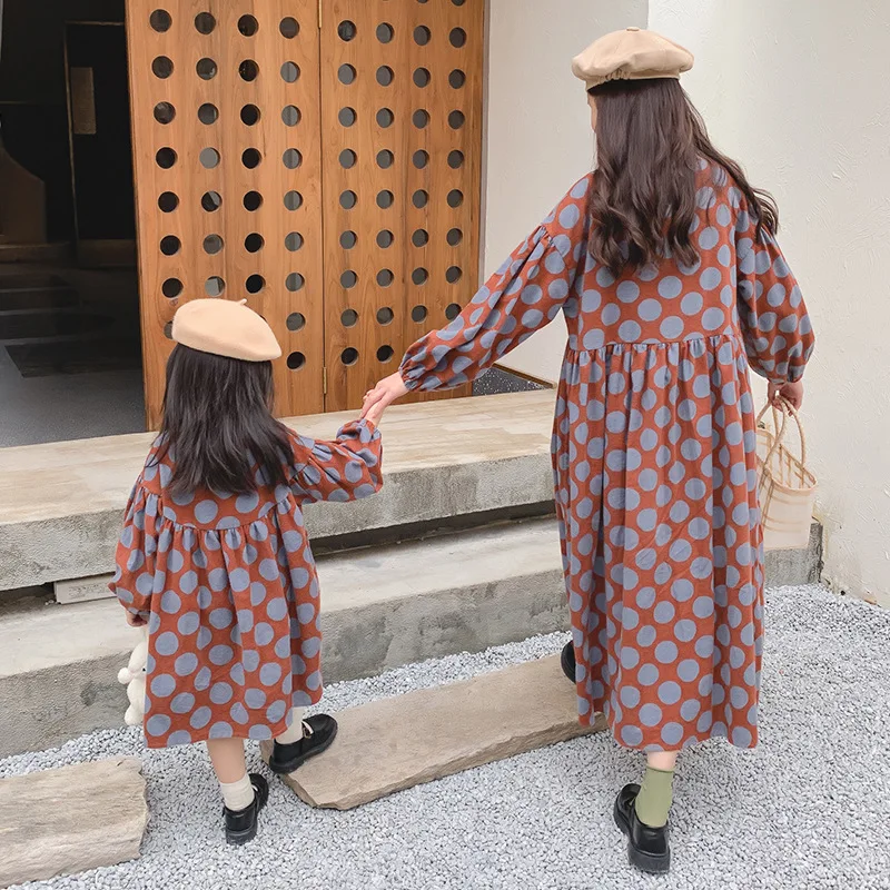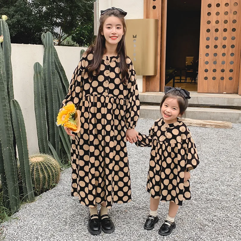 Осеннее платье в горошек с длинными рукавами и круглым вырезом для девочек и родителей 2020