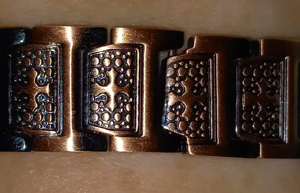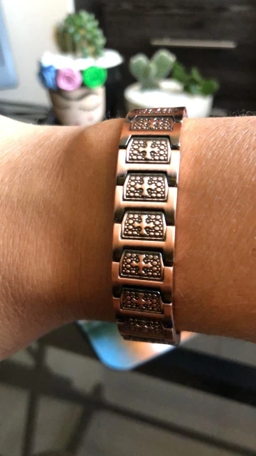 Не знаю медный браслет или нет, не проверял. По весу тяжёлый. Общение с продавцом хорошее, доставка быстрая, трек отслеживался. Качество на первый взгляд хорошее. Застежка мне кажется хлипкая. А так вроде ничего. Советую.