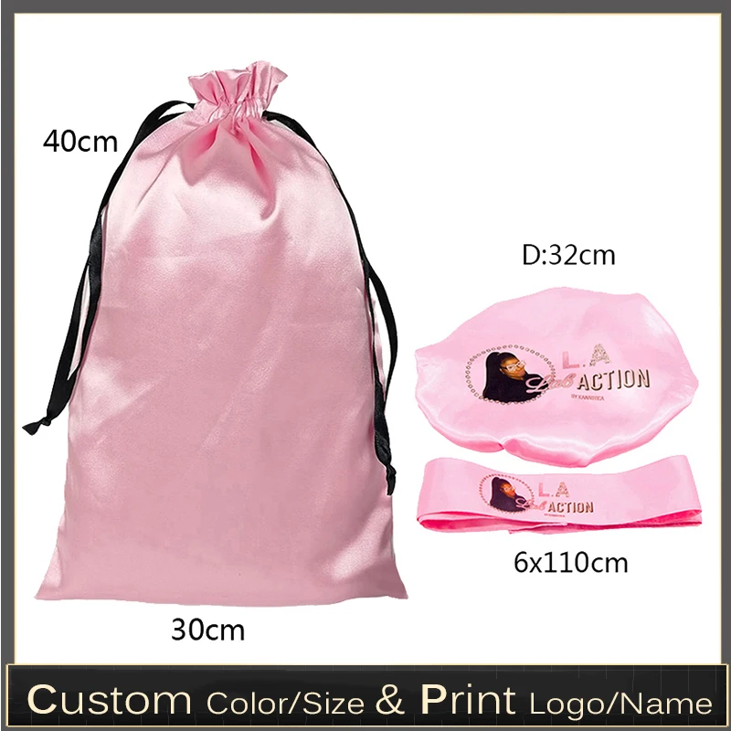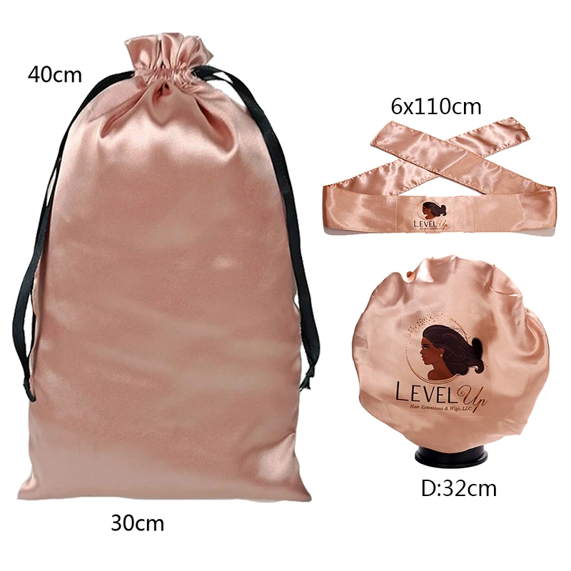 Шелковые атласные пакеты для упаковки волос с логотипом на заказ, п...